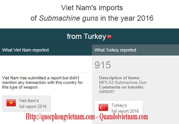 《简氏防务周刊》称,2007年,越南从一家位于拉瓦尔品第省拥有冷库的巴基斯坦武器公司——巴基斯坦军械工厂(POF)购买了100支MP5冲锋枪(巴基斯坦将其命名为SMG-PK)和50支PSR-90狙击步枪。 联合国武器登记机构(UNROCA)还报告称,2016年,土耳其还向越南出售了915支MP5A3版本的Heckler & Koch MP5枪。这批货物是空运的 越南机动警察团和越南特种部队正在使用两个版本:MP5A3和MP5KA4(缩短版)。