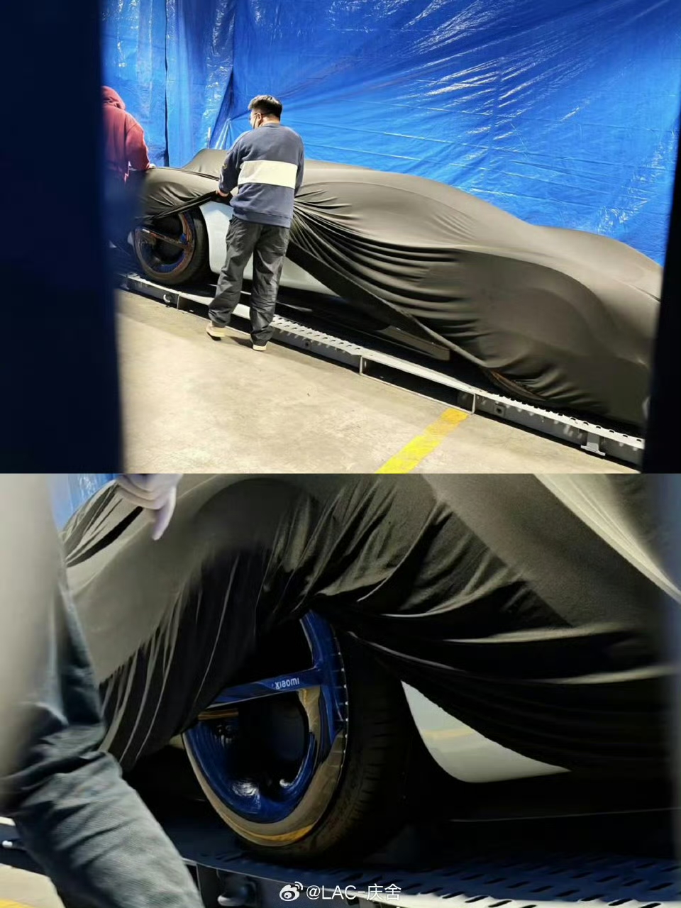 但网友的眼睛是雪亮的——昨天,有人在西班牙巴塞罗那街头拍到一台伪装车:流畅低趴的车身、巨大的扰流板、碳纤维侧裙,轮毂上赫然印着"xiaomi"字样。