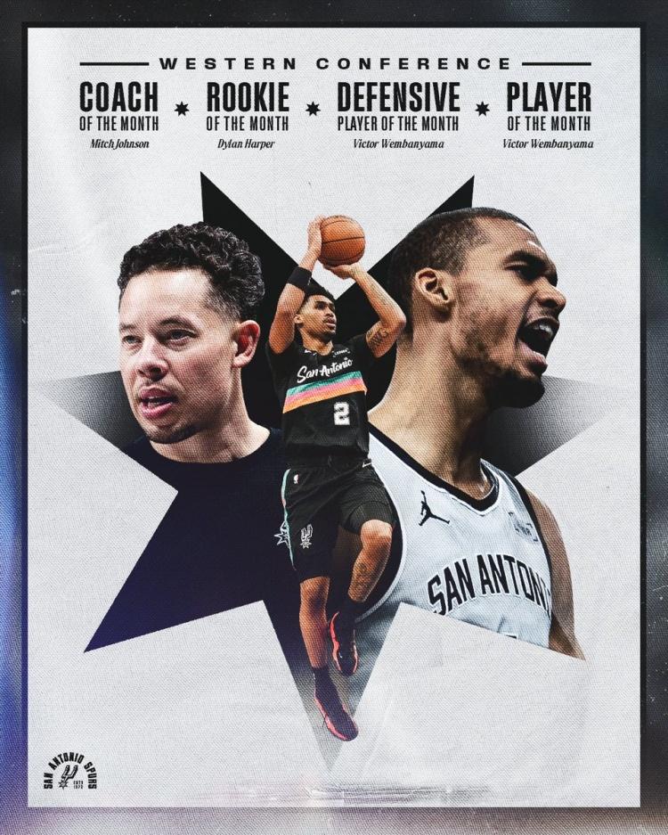 马刺的2月份光彩夺目!马刺球星文班亚马获得西部月最佳球员和月最佳防守球员!马刺主帅米奇·约翰逊获得西部月最佳教练!马刺球员哈珀获得西部月最佳新秀! 2月份,哈珀场均12.5分4.9助攻,投篮命中率55.4%。 马刺转型的成功,跟总经理莱特密切相关,他是马刺“后波波维奇时代”的核心操盘手,主导了马刺从“GDP时代”向“文班亚马时代”的艰难转变。 雷霆就照着马刺的模式,学的很成功。雷霆总经理普雷斯蒂,当年就是马刺的总经理助理,也是坚持让年轻球员在实战中成长。 有人说马刺缺能投射的大前锋,这种球员哪个队都需要,还不如想办法选个强硬的替补五号位实际。