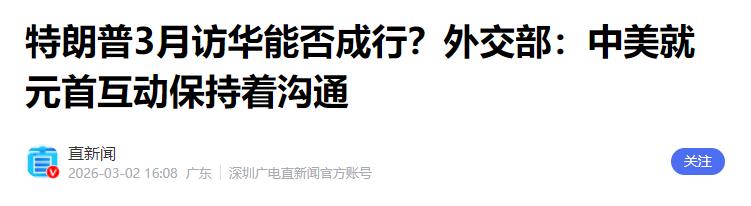 中美关系要变天了!8天前北京还在高调宣示元首外交"不可替代",3月2日画风突变,毛宁对特朗普访华只字不提战略意义,轻飘飘甩出"保持沟通"四个字打发了事。美军对伊朗的炮声还没停,北京的大门已经开始悄悄收窄——特朗普这张访华机票,恐怕要黄。 外交语言里没有废话,“不可替代的战略引领”和“保持沟通”,根本不是一个意思,是两个完全不同的政治信号。 8天前的“保持沟通”,是带着积极态度的,是在说“我们重视这件事,正在积极推进,希望能达成共识”;而3月2号的“保持沟通”,就只是单纯的官方回应,没有任何感情色彩,也没有任何积极倾向,意思就是“我们没说不沟通,但也没说要推进访华,具体怎么样,看情况再说”。 说白了,8天前是中方在给特朗普访华铺红毯,3月2号之后,就是把这红毯悄悄卷起来了。中方没有直接宣布取消特朗普的访华计划,没有把话说死,但意思已经说得很清楚了,特朗普这张访华机票,恐怕要黄了。 为什么中方的态度会变得这么快?其实原因很简单,就是因为美军在中东的所作所为,实在太过分了。 就在2月28号,美国和以色列联手,对伊朗发动了大规模的军事行动,这可不是简单的冲突,美军出动了两艘航空母舰、200架战斗机,还有5万多名士兵,在不到100个小时的时间里,就打击了伊朗近2000个目标,摧毁了17艘伊朗军舰,包括一艘潜艇,甚至还试图对伊朗最高领袖实施“斩首”行动,这种行为,完全无视联合国宪章,是赤裸裸的霸权行径。 大家可以想想,一边是美国在中东大开杀戒,践踏国际法,挑起地区动荡,一边又想若无其事地派总统来中国访华,谈合作、求帮助,天下哪有这样的道理?中国一直主张和平,反对霸权主义,反对随意发动战争,美国的这种做法,显然触碰了中方的底线,也破坏了中美之间对话合作的氛围。 要知道,特朗普之所以急着访华,其实是有自己的算盘的。现在美国的处境并不好,经济复苏乏力,国内问题一堆,还面临着能源、科技等多方面的困境,迫切需要中国这个巨大的市场来给美国经济“输血”,也需要和中国沟通,解决一些双方之间的分歧。 可美国一边想求中国帮忙,一边又在国际上搞霸权、挑事,甚至还把主意打到了中国的能源命脉上——伊朗是中国第三大原油供应国,美国打击伊朗,说白了就是想控制中东能源,掐断中国的能源大动脉,这种用心,中方不可能看不明白。 中方的态度很明确,我们愿意和美国沟通对话,也愿意推动中美关系稳定发展,但这种沟通对话,必须建立在平等、尊重的基础上,必须有和平的氛围,美国不能一边挑衅,一边又想获益。 8天前,中方愿意给特朗普访华铺红毯,是因为当时中美之间还有对话合作的基础,可美国在伊朗的军事行动,彻底破坏了这种基础,中方自然要收回之前的积极态度,把大门悄悄收窄。 还有一点很关键,美方在访华这件事上,也没遵守基本的外交礼节。按照惯例,两国元首访华,必须是双方经过多轮协商,把细节全部敲定后,再同步官宣,这是对彼此的尊重。 可这次美方,在没有和中方达成最终确认的情况下,就单方面公布了特朗普的访华行程,摆明了是想制造“既成事实”,逼着中方跟着他们的节奏走,这种不尊重人的做法,中方也不可能接受。 特朗普防华的可能性已经非常小了,中方现在的回应,已经把态度摆得很清楚了,不主动、不积极,只是维持最基本的沟通,没有任何推进访华的信号。 而且美军对伊朗的军事行动还在持续,中东局势越来越紧张,在这种情况下,中方根本不可能安排高规格的元首访华,特朗普想要拿到这张访华机票,恐怕是难上加难。 其实这件事,也从侧面反映出了中美关系的现状,大国之间的博弈越来越激烈,中方不会因为美方的施压或者造势,就打乱自己的节奏,更不会牺牲自己的原则和底线。 以前,美方总想着用各种手段测试中方的底线,可现在他们应该明白,中方的态度是坚定的,你尊重我,我就尊重你,你挑衅我,我就不会给你好脸色。 中美关系的风向已经变了,8天前中方还在高调宣示元首外交的重要性,为特朗普访华铺路,可3月2号的一句“保持沟通”,就已经把态度亮明了。 美军在伊朗的炮声,不仅搅乱了中东的和平,也让特朗普的访华计划岌岌可危。北京没有直接取消访华,但那层窗户纸已经被捅破了,特朗普这张访华机票,大概率是要黄了。