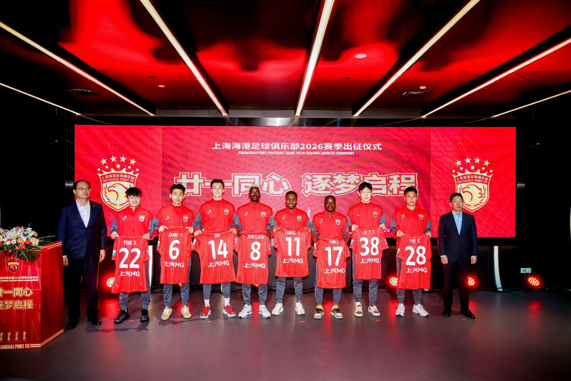 2026赛季中超联赛出征仪式:1、上海海港队2、上海申花队3、成都蓉城队4、天津津门虎队5、深圳新鹏城队6、武汉三镇队7、河南队