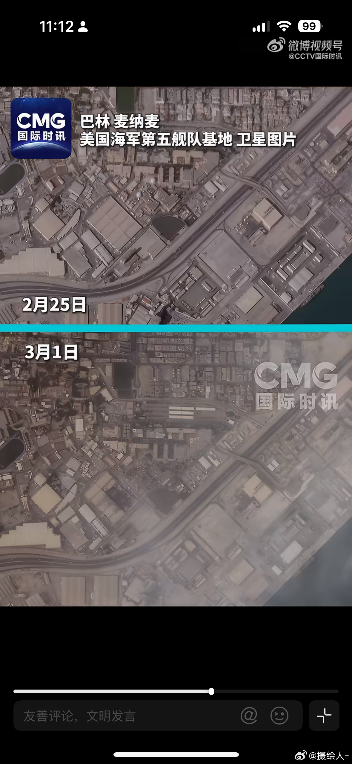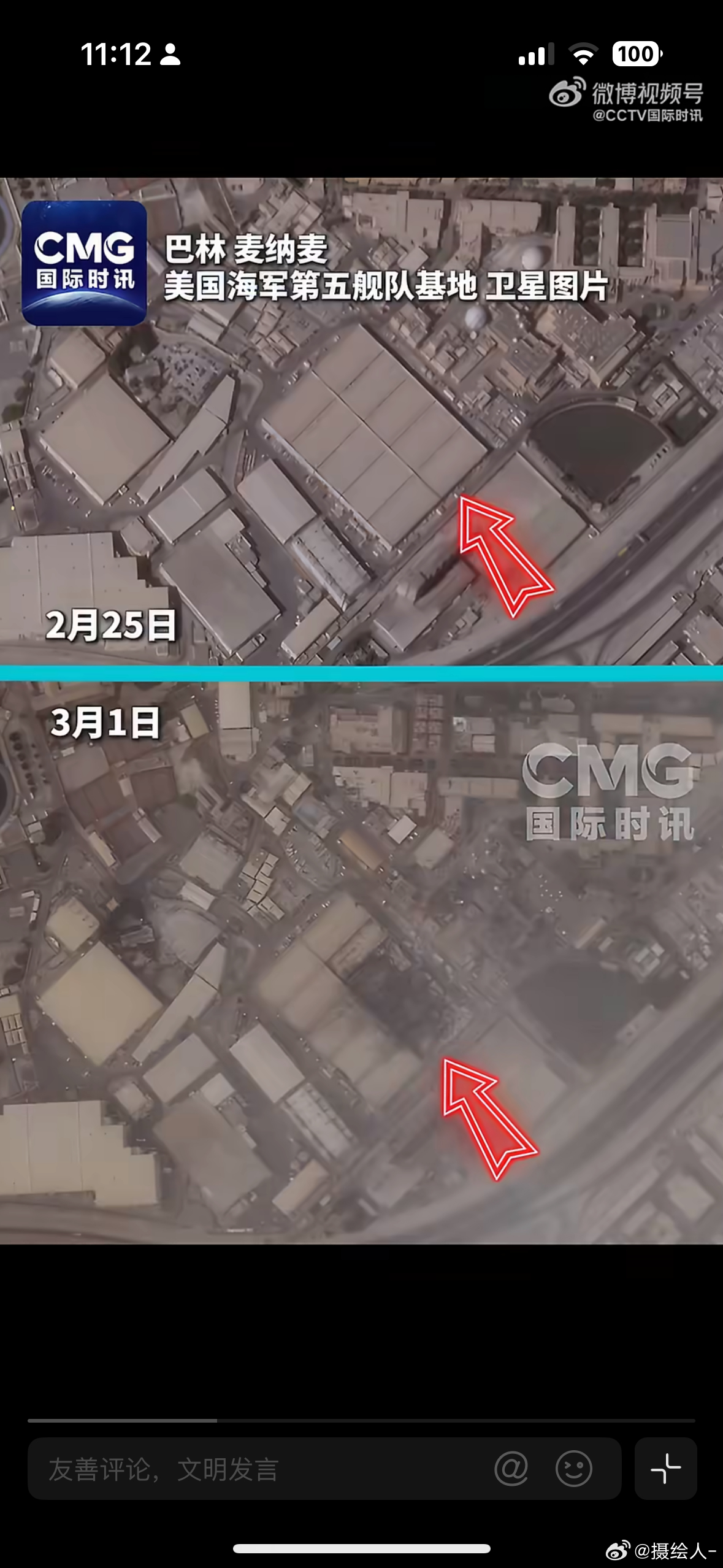 【#伊军方称用无人机击中美林肯号航母#】当地时间3月5日,伊朗武装部队哈塔姆·安