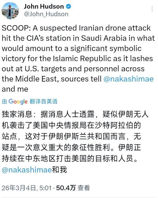 华盛顿邮报记者约翰·哈德森今天(北京时间3月4日)写道:“独家消息:据消息人士透露,疑似伊朗无人机袭击了美国中央情报局在沙特阿拉伯的站点,这对于伊朗伊斯兰共和国而言,无疑是一次意义重大的象征性胜利。伊朗正持续在中东地区打击美国的目标和人员。” 伊朗能在中东持续打击美国目标,核心底气来自其成熟的无人机作战体系。经过多年发展,伊朗已打造出覆盖近程到远程、侦察到攻击的完整无人机家族,其中“见证者”系列成为非对称作战的王牌。 这些无人机大多采用民用零部件组装,单机造价仅2到7万美元,却能实现1000至4400公里的航程,足以覆盖整个中东地区。 更关键的是,它们搭载了北斗导航系统和抗干扰模块,打击精度提升到1米级,即便面对美军电子干扰也能稳定运行。 这种低成本优势形成了惊人的交换比,一枚美军“标准-6”拦截弹造价240万美元,而拦截的伊朗无人机可能只值2万美元,相当于用黄金去砸石头,让美军陷入防御性价比的死局。 中情局在沙特的站点绝非普通据点,而是美国在中东情报网络的关键节点。位于利雅得的美国大使馆长期作为中情局与沙特情报机构的合作枢纽,负责协调针对伊朗、也门等地区的情报收集和反恐行动。 袭击这样的目标,等于直接切断美国在中东的重要情报链条,其象征意义远超军事打击本身。 对伊朗而言,这是对美以2月28日“史诗怒火”联合空袭的直接报复,更是向外界展示“你打你的、我打我的”对抗能力——美军可以凭借空中优势轰炸伊朗本土,伊朗却能精准打击美国在盟友境内的核心设施。 伊朗选择此时出手,有着深刻的内外动因。内部层面,伊朗正遭遇严重经济困境,货币里亚尔较2022年贬值超230%,2025年通胀率飙升至42.2%,食品价格上涨72%,民生压力巨大。通过打击美国目标,既能转移国内民众注意力,又能强化政权的合法性,凝聚民族共识。 外部层面,美以的联合打击让伊朗退无可退,30多个境内目标遭袭后,伊朗必须做出强有力回应才能维持地区威慑力。 更重要的是,美国在中东的战略收缩给了伊朗可乘之机,美军虽部署双航母和近20架加油机,但国内对长期战争的支持度极低,特朗普政府不愿陷入地面战争泥潭,这种犹豫被伊朗精准捕捉。 沙特的微妙立场为伊朗行动提供了间接空间。2023年沙伊在北京复交后,两国关系虽有缓和,但深层矛盾并未消除。沙特既想维持与美国的安全合作,又不愿彻底得罪伊朗,这种“骑墙”姿态让其领土成为美伊博弈的灰色地带。 尽管沙特否认曾游说美国打击伊朗,但伊朗显然抓住了沙特不愿直接卷入冲突的心理,选择在沙特境内打击美国目标,既避免了与沙特直接对抗,又能让美国质疑盟友的可靠性,进一步离间美沙关系。这种借力打力的策略,让伊朗在不扩大冲突范围的前提下,最大化了打击效果。 美国的应对困境更凸显了伊朗行动的战略价值。美军在中东拥有绝对的海空优势,但面对伊朗无人机的饱和攻击,先进的“爱国者”“萨德”反导系统显得力不从心。 伊朗日均400架的无人机生产能力,使其具备持续发动攻击的潜力,而美国不可能在每个盟友境内都部署密集防御。 更关键的是,美国的战略重心已逐渐东移,不愿在中东投入过多资源,特朗普政府模糊的表态——既不排除地面部队又强调“必要时才行动”,暴露了其投鼠忌器的心态。伊朗正是看透了这一点,才敢持续以小博大,用低成本无人机消耗美国的战略耐心和资源。 这场对抗的本质,是传统军事霸权与非对称作战模式的较量。伊朗没有与美国正面抗衡的实力,却通过精准定位美国的弱点,打造出一套“打得准、耗得起、难防范”的对抗体系。 袭击中情局沙特站点只是一个缩影,未来伊朗可能会继续沿用这种模式,打击美国在中东的军事基地、情报节点和能源设施。 而美国面临的两难是,加大打击力度可能引发更大规模报复,甚至导致霍尔木兹海峡封锁(全球31%的海运原油经此通道),引发油价飙升;维持现状则会不断丧失地区影响力,让盟友对其安全承诺产生怀疑。 中东局势的走向因此变得更加复杂。沙伊关系在此次事件中再次经受考验,沙特的中立立场能否维持,取决于美国能否提供足够的安全保障,以及伊朗是否会进一步扩大在沙特境内的行动。 美国的战略犹豫可能会让更多地区国家重新评估与美国的关系,而伊朗则可能通过持续的非对称打击,逐步巩固其在“抵抗轴心”中的领导地位。这场看似小规模的无人机袭击,正在悄然改变中东的力量平衡,让原本就紧张的地区局势,进入更难预测的博弈新阶段。