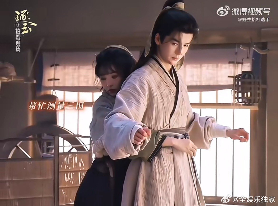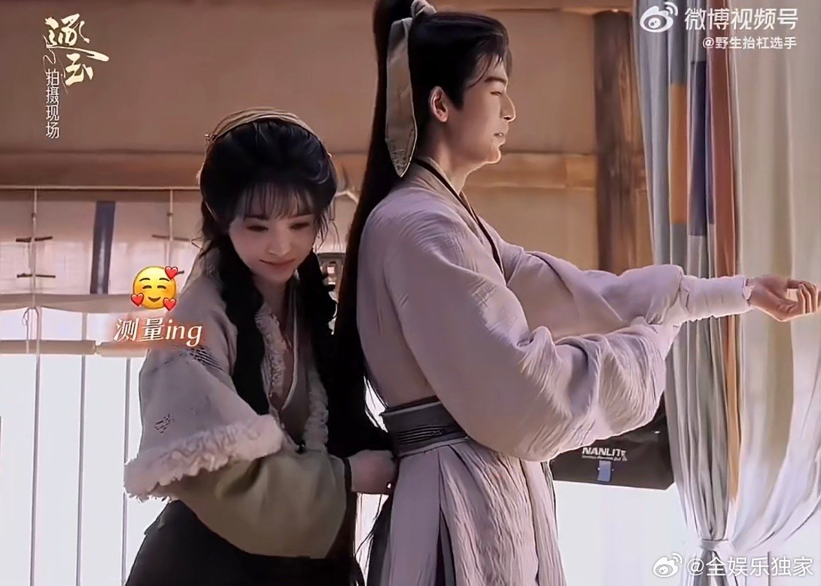 田曦薇帮张凌赫量三围 谁磕到了!片场互动也太甜了,田曦薇调皮可爱,张凌赫温柔宠溺,甜度严重超标!谢征樊长玉量三围花絮