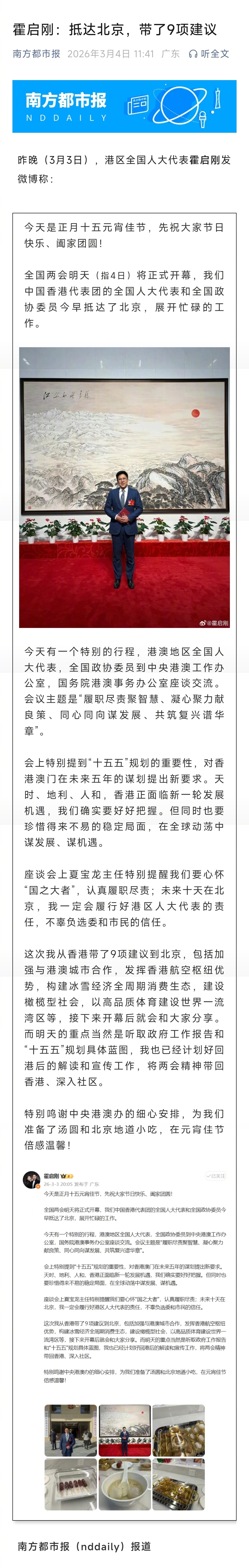 #霍启刚带9项建议上两会#【霍启刚:抵达北京,带了9项建议】#霍启刚抵达北京带了9项建议#3月3日晚间,港区全国人大代表霍启刚发微博称: