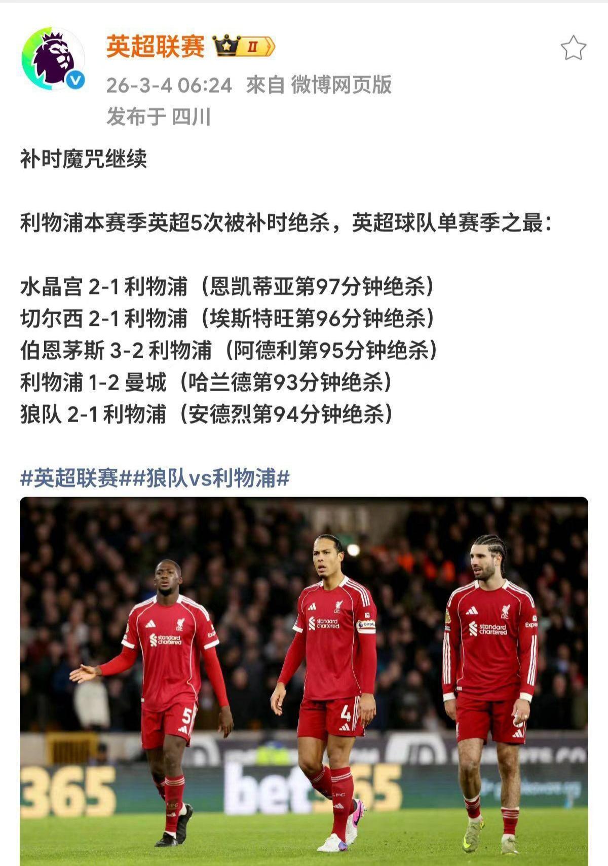 利物浦本赛季五次被绝杀,谁能解释原因? 最后时刻精神注意力不集中,还是体力容易透支? 每次都是利物浦被绝杀,当然他们也有绝杀对手时候,本赛季比赛真好看呀。[笑哭]