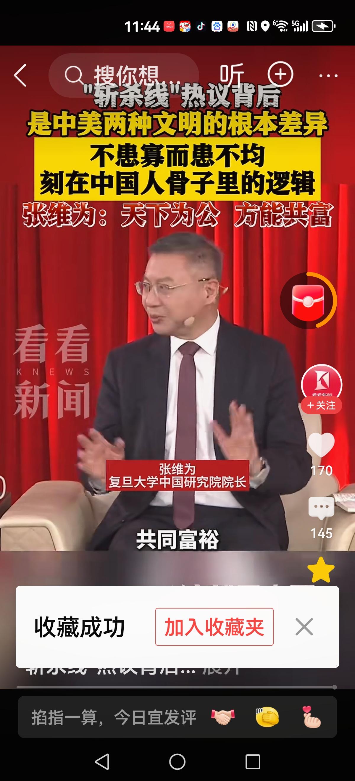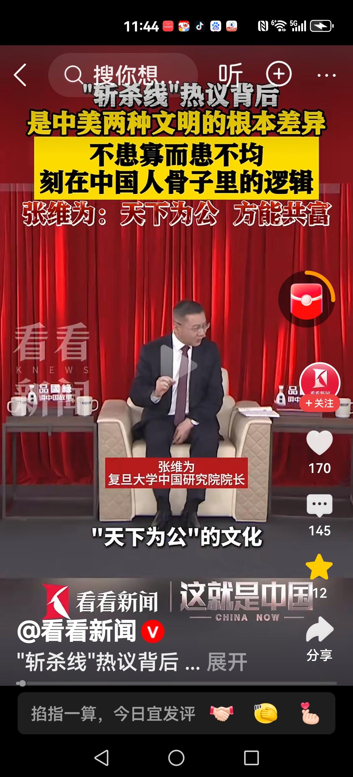 【天下为公的文化】 张维为: 天下为公的文化,美国斩杀线没有这种文化,导致贫富差距太大了! 我们实现普遍富裕,共同富裕! 还记得胡锡进那句话吗?全民发钱,等于没有发钱,你琢磨琢磨! 现在他们翻手云雨,说过话从来不需要负责,对与错毫无意义?