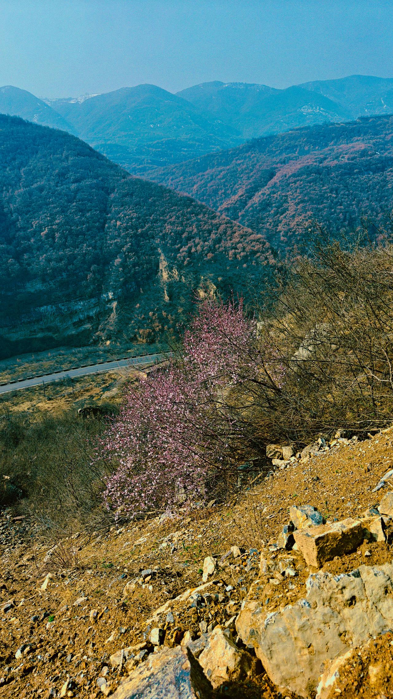 昨天是正月十五,去豁口看一朋友老梁。 登上半山腰,山间一树桃花,正在绽放。 在城里只知道梅花报春,不知道桃花也这么早就开放了。