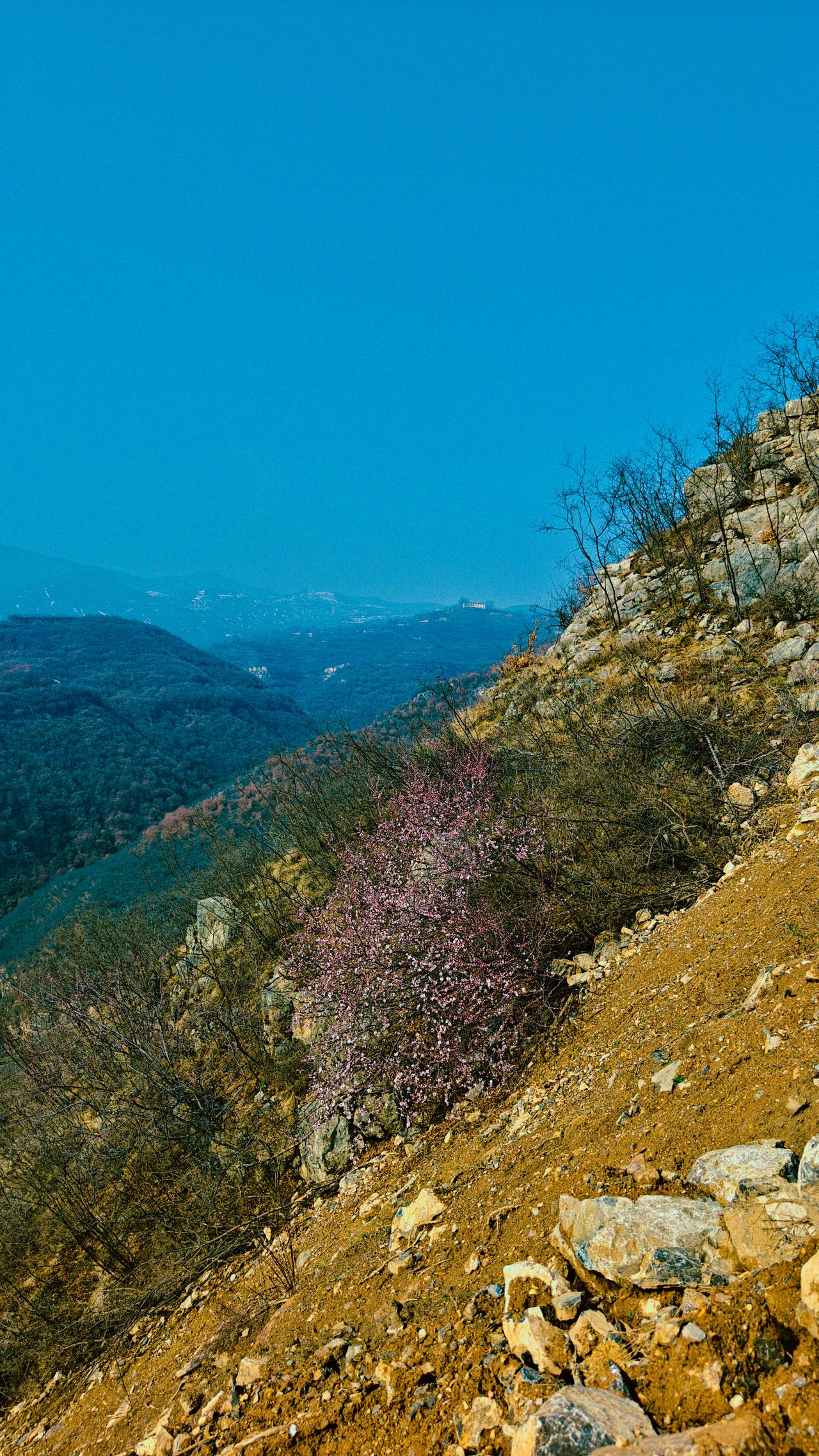 昨天是正月十五,去豁口看一朋友老梁。 登上半山腰,山间一树桃花,正在绽放。 在城