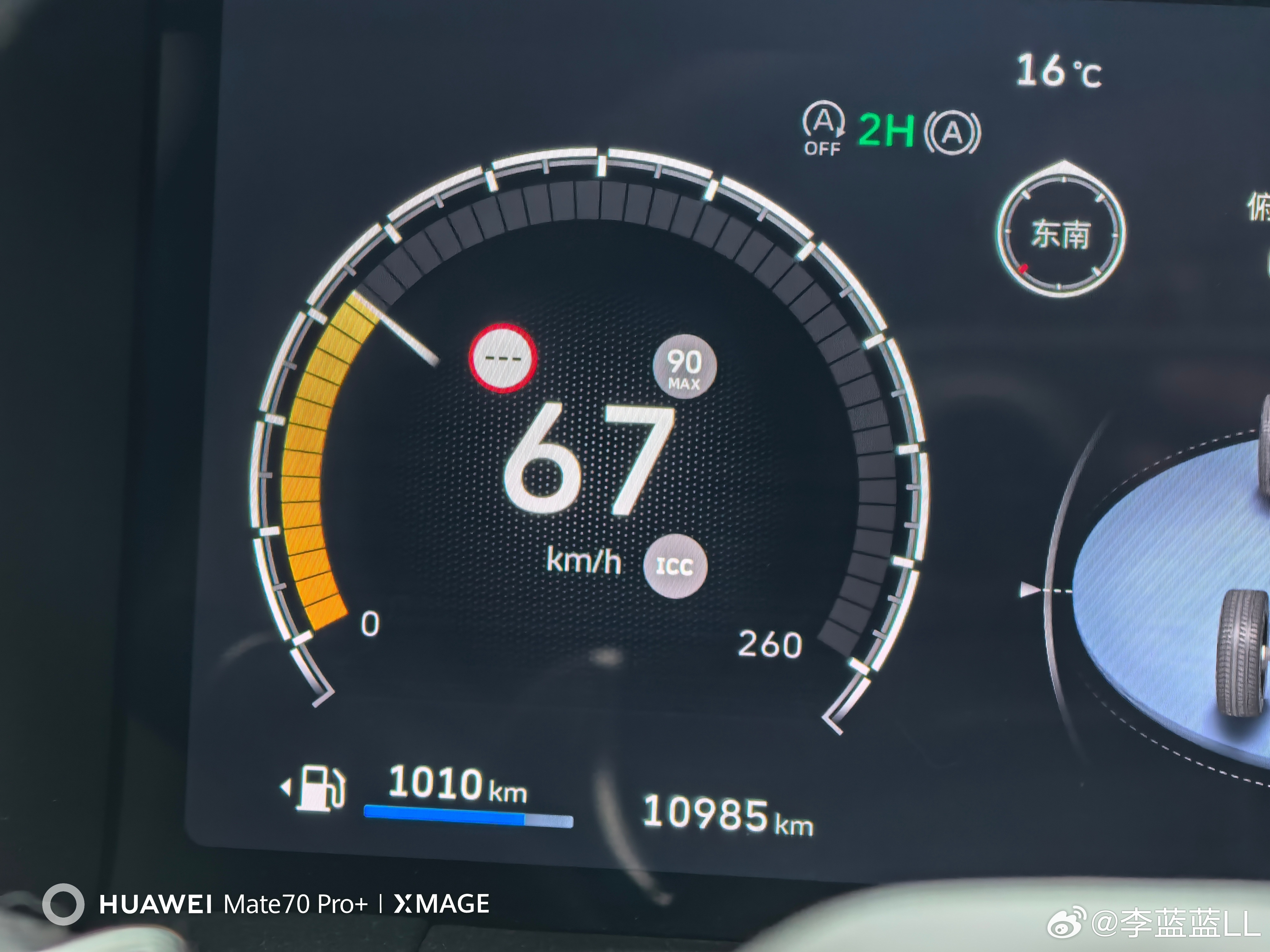 前天不是刚加满油吗?当时特意拍了个照片(图2)。续航1152公里。总里程10720公里。
