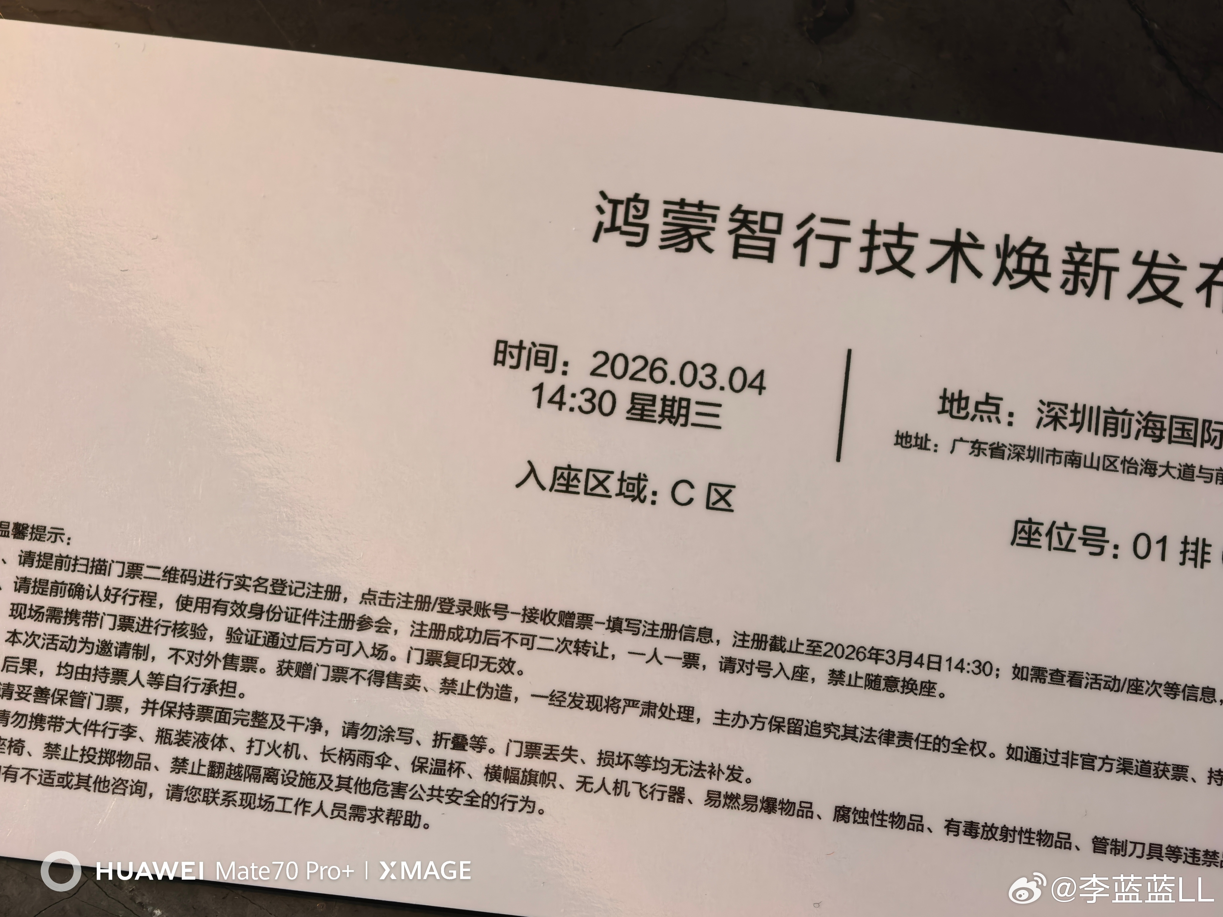 其他基本就是发个胸卡。华为是给个门票,自己扫码注册,上面会有区域以及座位号,非常有序。