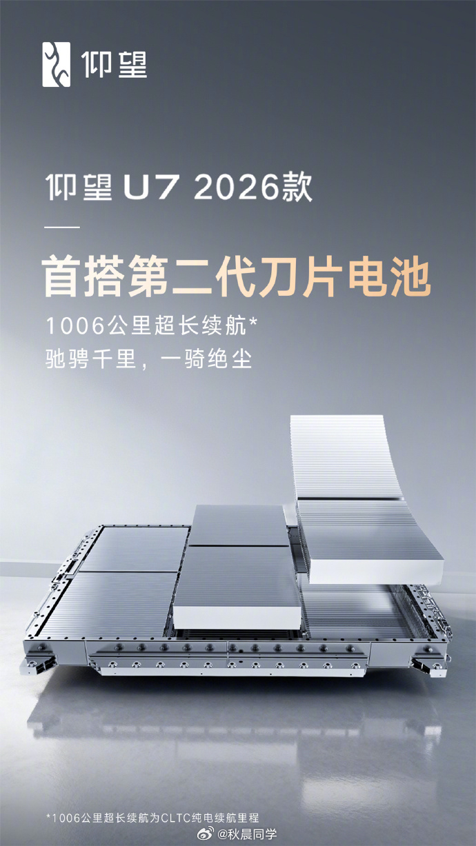 新款仰望U7首搭第二代刀片电池