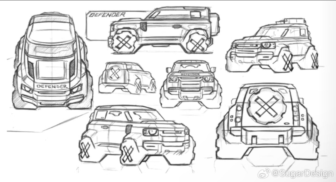 路虎卫士早期方案曝光!图1的侧面不错,很有老卫士的味道。还不快致敬一下🫡下手晚了就被抢先了图源XHS:C.