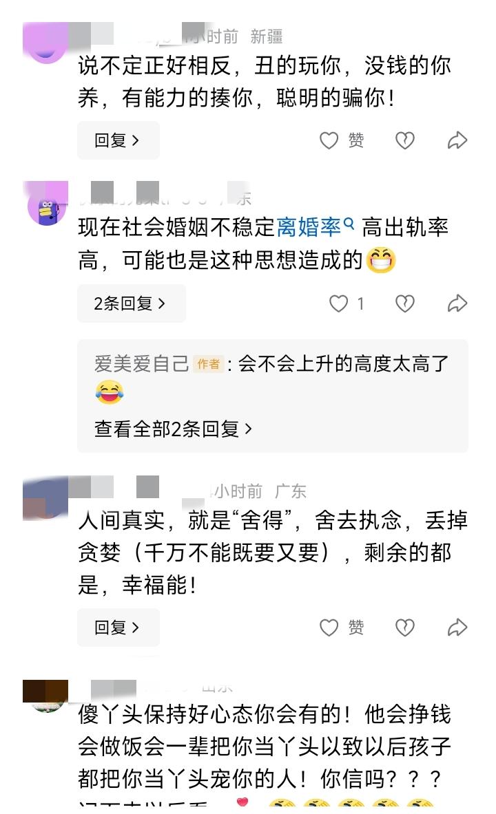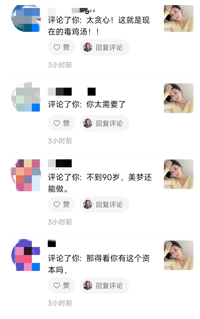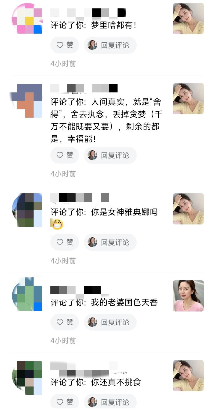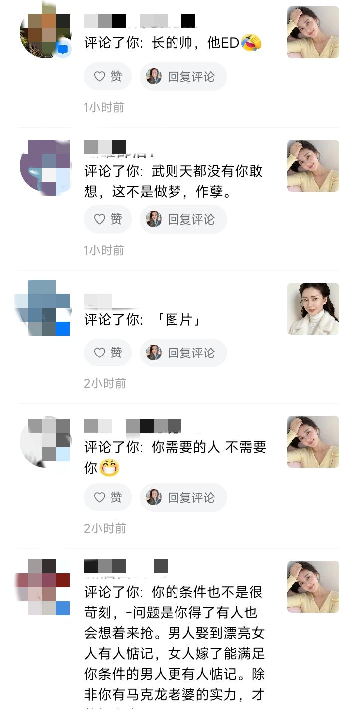 【精选评论区】昨天做梦帖的骂声,我帮大家分类了😂 昨天说想要四个男人,评论区炸了。我一条条看完,发现可以分成这几类: 第一类:人身攻击型 “找个黑人吧” “找个有钱的美国老头” ——嗯,攻击我满足不了你,你开心就好。 第二类:“你不配”型 “这样的人会喜欢你吗?” “那得看你有这个资本吗” ——原来我的标准,需要你先审批通过才行? 第三类:诅咒恐吓型 “丑的玩你,没钱的你养,有能力的揍你,聪明的骗你!” “长得帅,他ED” “你需要的人不需要你” ——这是怕我不害怕,就不降低标准吗? 第四类:上纲上线型 “武则天都没有你敢想,这不是做梦,作孽” “毒鸡汤害人” “太贪心” ——原来女人做梦,是危害社会的事? 我看了半天,发现一个规律: 骂得越狠的人,越像在给自己写内心独白。 他们不是在说我,是在说: “如果女人都像你这样清醒,我们就骗不到、吓不住、配不上了。” 那我更要继续做梦了。 毕竟,梦醒了,难受的是他们。😊 评论区 伤人最深的评论