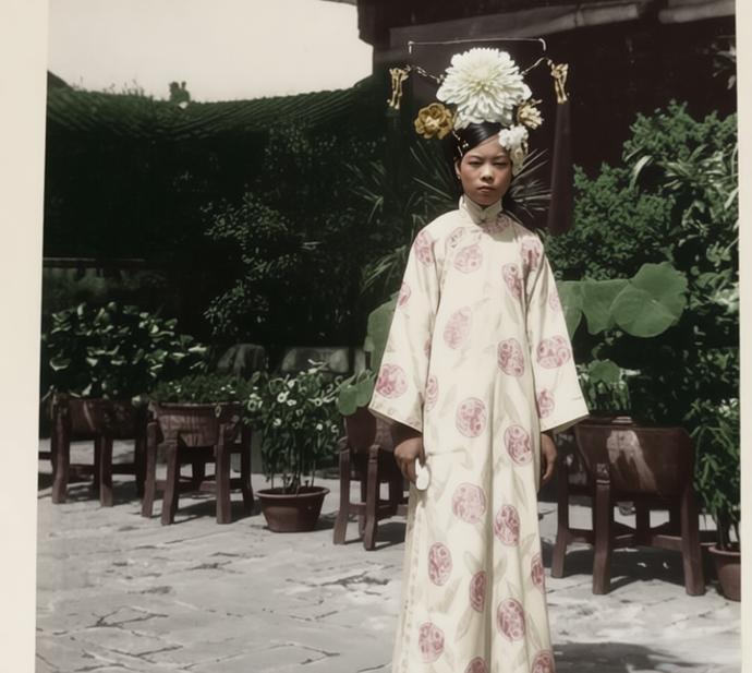 这张照片中的人是末代皇帝溥仪的淑妃文绣,身着清代旗人女子的传统服饰——绣有团龙纹的长袍,头戴华丽的大拉翅旗头,上面装饰着硕大的绒花和珠翠,拍摄于她在紫禁城“小朝廷”时期,是她为数不多的存世影像之一。 1922年,13岁的文绣被选入宫,封为淑妃。但她在宫中的生活并不幸福,溥仪对她十分冷淡,加上婉容的排挤,她长期处于抑郁之中。 1931年,文绣不堪忍受宫廷生活的压抑和溥仪的冷遇,毅然聘请律师,向天津地方法院提出与溥仪离婚的诉讼,最终成功离婚,这一事件被称为“刀妃革命”,震惊全国,也彻底打破了“君为臣纲”的封建礼教束缚。 离婚后,文绣恢复了本名傅玉芳,先后做过教师、校对员等工作,过着自食其力的平民生活。1953年,她因病在北京去世,年仅44岁。