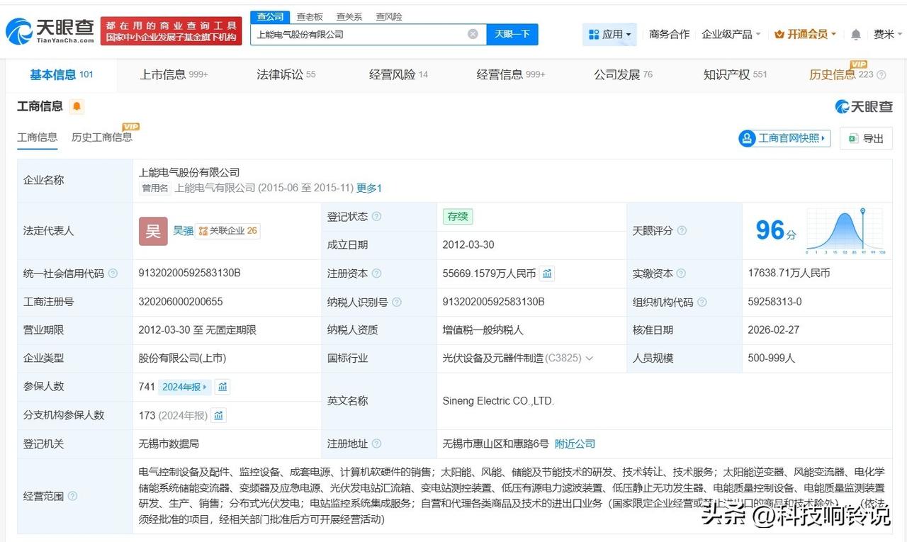 【上能电气增资至5.6亿 增幅约11%】 天眼查App显示,近日,上能电气(300827)发生工商变更,注册资本由约5亿人民币增至约5.6亿人民币,增幅约11%。 上能电气股份有限公司成立于2012年3月,法定代表人为吴强,经营范围包括电气控制设备及配件、监控设备、成套电源、计算机软硬件的销售等。股东信息显示,该公司由吴强、段育鹤、无锡朔弘投资合伙企业(有限合伙)等共同持股。 天眼查信息: