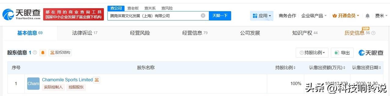 【腾讯、拳头游戏合资公司增资至10.5亿 增幅约98%】 天眼查工商信息显示,近日,腾竞体育文化发展(上海)有限公司发生工商变更,注册资本由5.3亿人民币增至约10.5亿人民币,增幅约98%。 腾竞体育文化发展(上海)有限公司成立于2019年1月,法定代表人为黄凌冬,经营范围包括体育赛事策划、文化艺术交流与策划、市场营销策划等。股东信息显示,该公司由Chamomile Sports Limited全资持股。公开资料显示,该公司为腾讯与拳头游戏合资成立的电竞赛事运营公司,负责英雄联盟电竞在中国的运营。 天眼查信息: