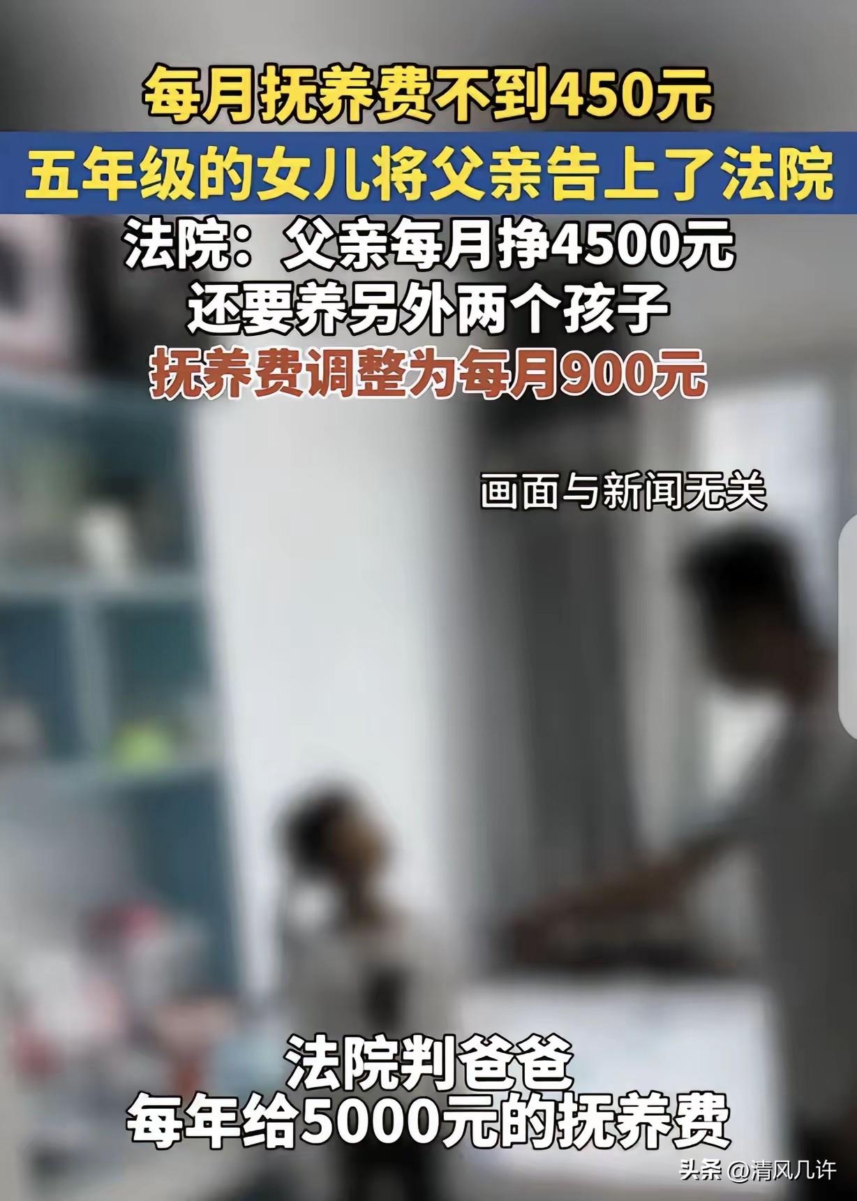 “扎心了!”山东聊城,一5年级小姑娘,父母离婚时,她被判给妈妈,爸爸每年支付5000元抚养费,每月合416元,女孩却一纸诉状把爸爸告了,说他每月挣4500,一个月才给她416,不够她吃喝拉撒还有学费,要求爸爸每月给1500元,法院:爸爸还要养再婚家庭的2个孩子,每月给900吧。网友:给吧,给到18岁断绝关系吧,就当没生过这个白眼狼。 这是山东聊城市东昌府区人民法院审理的真实抚养费纠纷案件,案件中的女孩小刘正读小学五年级,2015年她的父母经法院调解离婚,双方达成一致意见,小刘由母亲直接抚养,父亲刘某每年支付抚养费5000元,折算下来每月仅有416.67元。 这笔费用在离婚当年尚能维持小刘最基础的饮食起居,随着时间推移,当地物价水平持续上涨,小刘升入小学高年级后,教育支出、生活耗材、医疗保障等各项成长开支不断增加,原定的抚养费标准早已无法支撑她的正常生活与学习需求。 小刘的母亲独自承担起全部抚养责任,没有稳定的高额收入来源,日常要负担房租、餐饮、学习资料、课后托管等各类必要支出,整个单亲家庭的经济状况长期处于紧绷状态。小刘从小比同龄人更懂事,她亲眼看着母亲为生计日夜操劳,常常在深夜还在为生计奔波,心里满是心疼与无力。 她不愿看到母亲独自扛下所有生活重压,更希望自己能拥有和同龄孩子一样的基本成长条件,不用在生活开支上处处拮据,这才在法律的支持下,向法院提起诉讼,要求父亲将每月抚养费增加至1500元。 父亲刘某的生活同样承受着难以缓解的经济重压,他在离婚后不久便组建了新的家庭,再婚配偶带来一名未成年子女共同生活,两人婚后又生育一子,一家四口的全部生活开支,都依靠他打零工获得的每月4500余元收入支撑。 房贷月供、婴幼儿奶粉、家庭日常开销、两名年幼子女的抚育与教育费用,每一笔支出都让他的收入显得捉襟见肘。他始终严格按照离婚协议的约定,按时足额支付抚养费,从未出现过拖欠情况,只是同时承担三名未成年子女的法定抚养责任,让他实在没有能力承担更高额度的抚养支出。 双方就抚养费调整事宜多次私下沟通,始终无法在金额上达成统一意见,小刘只能通过法律途径维护自身的合法成长权益。法院受理案件后,没有偏听任何一方的表述,而是对双方的实际收入、家庭负担、当地居民人均生活水平以及小刘的实际成长需求展开全面细致的核查。 法院明确认定,父母与子女的身份关系,不会因父母婚姻关系的解除而消除,离婚之后父母对于子女依旧负有抚养、教育、保护的法定权利与义务,子女在必要时,完全有权向父母任何一方提出超过原定数额的合理抚养费要求。 法院审理后清晰查明,每月416.67元的抚养费标准,已经明显低于聊城市当地实际生活水平,完全不能满足小刘生活、上学、就医的基本需要。 父亲刘某的月收入相对固定,却需要同时抚养三名未成年子女,按照民法典及相关司法解释的规定,负担多名子女抚养费的,给付比例不得超过月总收入的百分之五十,法院在裁判时,必须在充分保障小刘成长权益的同时,兼顾父亲的实际经济负担能力,不能让任何一名未成年子女的基本成长权益受到损害。 法院全程秉持未成年人利益最大化的核心裁判原则,综合全案所有事实与法律规定,最终作出判决,将刘某每月支付的抚养费调整为900元,按月支付直至小刘年满十八周岁。 小刘对一审判决结果不服提起上诉,二审法院经全面审理后,认定一审判决认定事实清楚、适用法律准确,依法驳回上诉,维持原判,这份判决也成为平衡多子女抚养纠纷的典型判例。 案件在网络上快速传播后,网友的评论陷入两极分化的激烈争论,部分网友站在父亲的现实处境立场,用偏激且伤人的语言指责小刘,给年仅11岁的孩子贴上白眼狼的标签。 也有网友坚定认为,父亲对亲生女儿的法定抚养义务,不会因组建新家庭而弱化消除,孩子的基本成长需求理应得到法律与亲情的双重保障。还有网友理性认可法院的判决,觉得这份判决在法律规定与现实情理之间找到了最佳平衡点,既有效提升了小刘的成长保障,也没有超出父亲的实际经济承受范围。 网友的极端评价完全忽略了案件背后的真实处境,小刘提起诉讼从来不是出于对父亲的怨恨,而是对自身基本成长权益的正当主张,她只是想减轻母亲的生活压力,拥有稳定且有保障的生活与学习环境。 刘某也不是冷漠失职的父亲,他被多重家庭责任牢牢裹挟,每一分收入都关系着三个孩子的日常成长,陷入了难以两全的无奈与挣扎。 法律的判决始终保持中立与理性,没有偏向任何一方,而是用严谨的尺度平衡了未成年子女的成长需求与父母的经济负担,这也是抚养费纠纷案件的核心裁判准则。 这起案件也让大众打破了片面认知,子女依法请求增加抚养费,是法律明确赋予的正当权利,与道德绑架、不孝指责毫无关联。 各位读者你们怎么看?欢迎在评论区讨论。