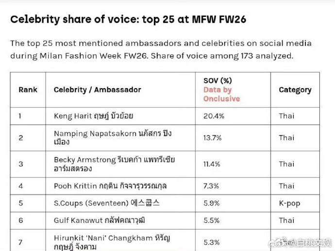 米兰时装周大使声量份额排名米兰时装周期间SOV排名Dior生图 米兰时装周大使声量排名揭晓,KengNaming直接包揽前二!家产的国际知名度这次彻底爆发了,太让人骄傲了!
