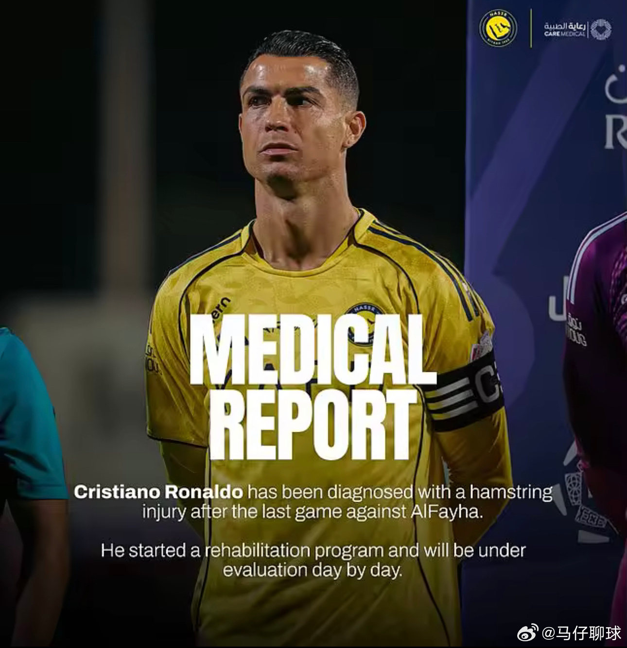 3月4日讯 利雅得胜利官方:C罗在上一场比赛后,被诊断出腿筋受伤。他已开始康复计划,并将接受每日评估。
