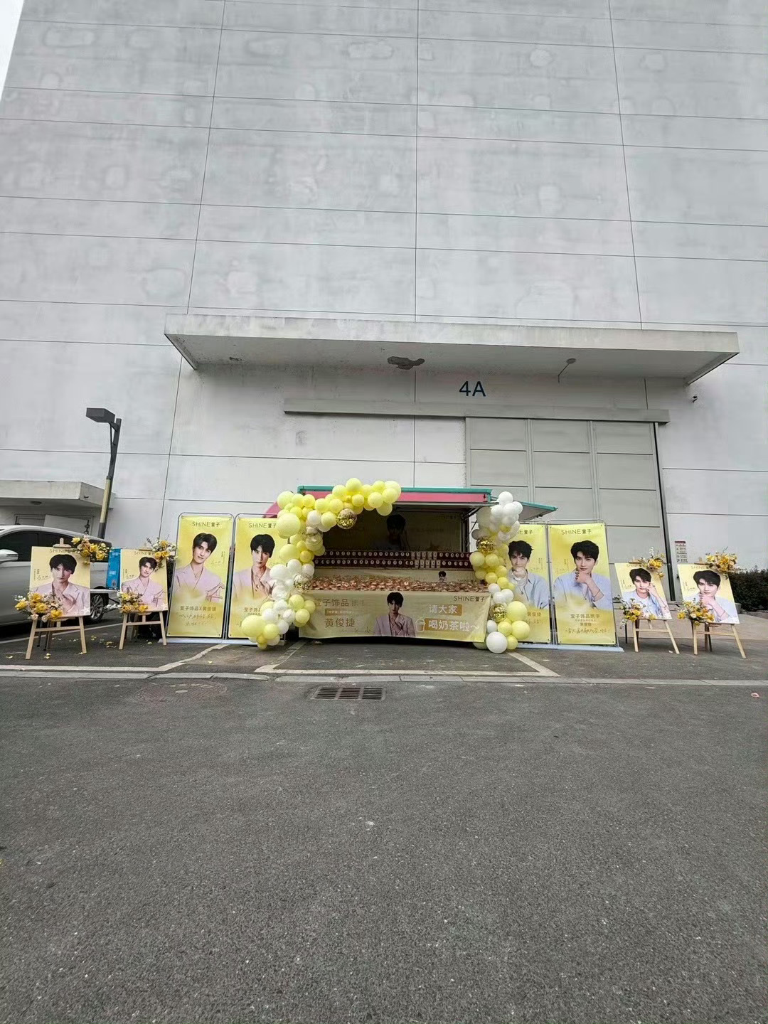 黄俊捷代言的品牌萱子饰品探班《大宋奇闻录》剧组 ,准备了应援小摊,请工作人员喝奶