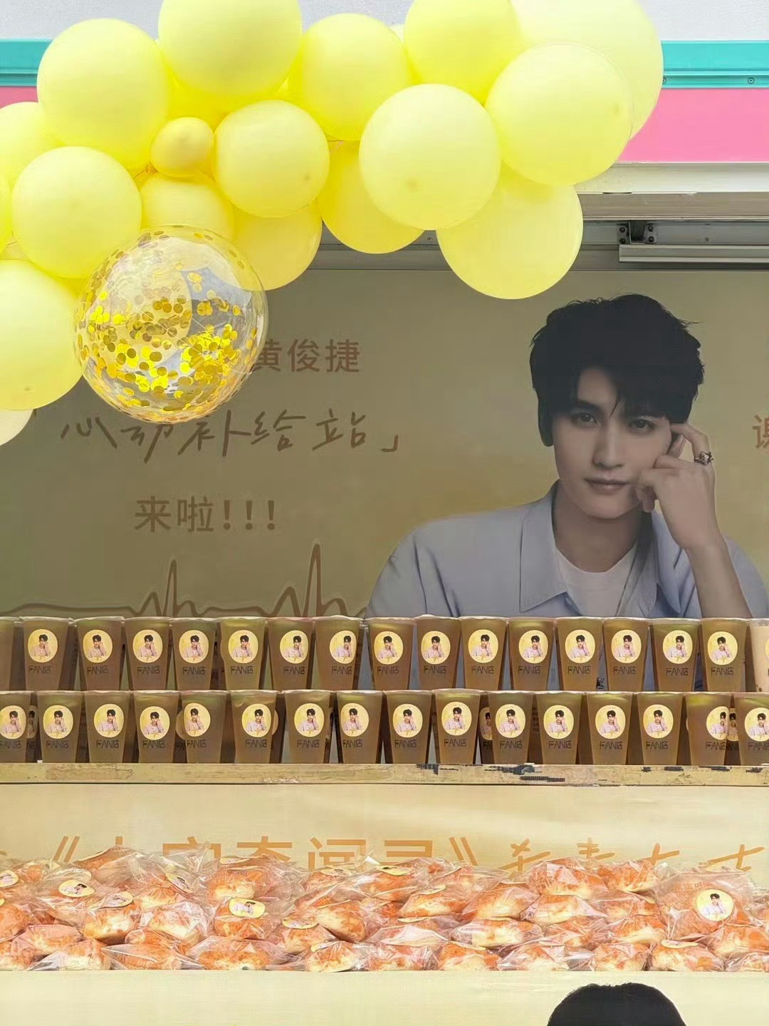 黄俊捷代言的品牌萱子饰品探班《大宋奇闻录》剧组 ,准备了应援小摊,请工作人员喝奶茶吃面包!品牌就这样宠爱!