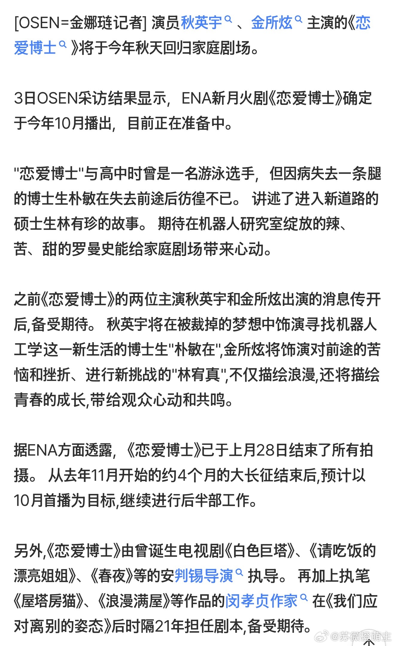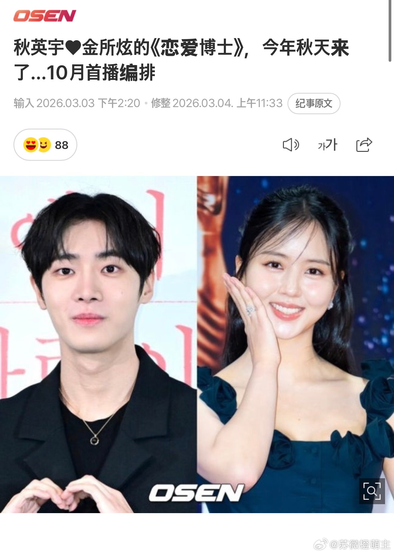 又改十月了哇秋泳愚♥金所泫《恋爱博士》,今年秋天来了...10月首播编排
