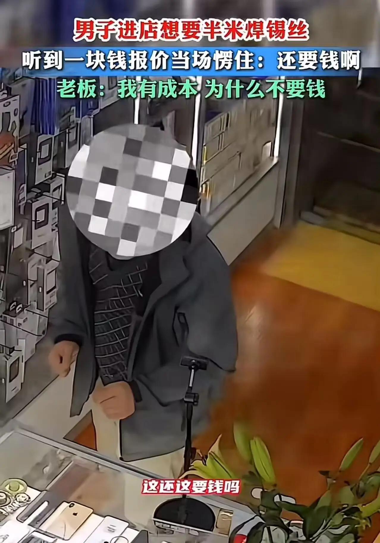 奇葩!陕西icon,男子走进维修店,跟老板说想要半米焊锡丝,老板说要1块钱。男子