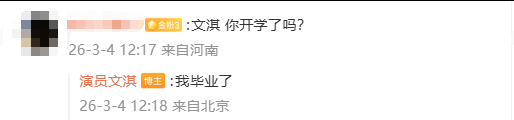 文淇 我毕业了 粉丝:文淇,你开学了吗?文淇:我毕业了