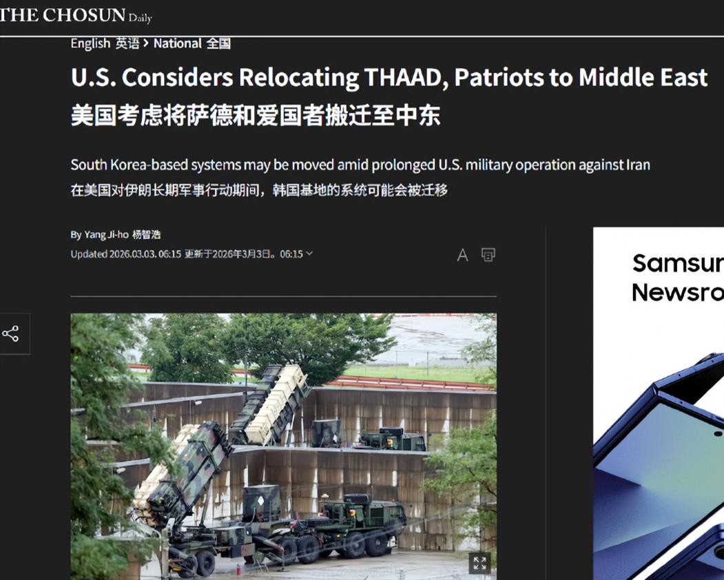 才打4天就要拆东墙!最新消息:美国急调韩国萨德、爱国者赴中东,韩国慌了 当地时间3月3日,在伊朗全力反击的背景下,据韩国媒体报道,原用于保护美国在远东盟友的美国最先进的“萨德”防空系统、“爱国者”防空系统以及监视和侦察设备即将被转移至中东。 可能有人会问,美国在中东那么多军事基地,手里的装备也不少,怎么就急到要调韩国的萨德和爱国者?答案很简单,伊朗这波反击,是真的把美军打疼了。 根据伊朗伊斯兰革命卫队3月4日公布的消息,他们已经接连击毁了美军部署在中东的三套萨德系统,一套在约旦穆瓦法克·萨尔蒂基地,另外两套在阿联酋,每一套萨德的造价都超过10亿美元,三套下来,30亿美元直接打水漂。 更让美国着急的是,弹药库存已经告急。根据彭博社3月3日的分析,按照目前的消耗速度,卡塔尔的爱国者拦截弹库存最多还能维持4天,而美军的萨德拦截弹也不够用——去年6月美伊12天的冲突里,美军就消耗了150枚萨德拦截弹,而自萨德服役以来,美军总共才订购了不到650枚,产能根本跟不上消耗速度。这种情况下,美国除了从其他地区调运现成装备,没有别的办法。 可美国一伸手,最慌的就是韩国。说句实在的,韩国部署萨德和爱国者,说白了就是靠这两套系统“保命”的。韩国周边的安全环境本就复杂,朝鲜的弹道导弹一直是他们的心腹大患,而萨德和爱国者,就是韩国应对这种威胁的核心装备,承担着高空拦截、中低空防御和早期侦察的关键任务。 就算有萨德和爱国者在,面对朝鲜1500枚现役短程导弹,韩国现有系统也只能拦截30%-40%的首波攻击,要是这两套核心装备被调走,韩国的防御能力会直接腰斩,相当于把自己的软肋暴露在外面。 更让韩国不安的是,这已经不是美国第一次这么做了。去年6月,美国在空袭伊朗核设施前,就从驻韩美军的8套爱国者系统中抽调了3套,还派了500多名美军人员前往中东,直到当年10月才返回韩国。有过一次被“抽调”的经历,现在美国又要来,韩国能不慌吗? 可能有人会觉得,美国这么做,是不是太不把盟友当回事?其实不然,这背后全是美国的自私算计。 对美国来说,中东是其核心利益区,现在伊朗的反击已经威胁到了美国在中东的驻军和盟友,必须优先保住中东;而韩国,在美军的战略布局里,更多是用来牵制东北亚局势的,只要不是立刻面临灭顶之灾,暂时牺牲一下韩国的安全,对美国来说无关紧要。 现在的局面,其实就是美国战略困境的缩影。一边要在中东打压伊朗,维持自己的霸权地位;一边又要在东亚牵制相关国家,保住自己的影响力。可美国的实力早已不如从前,根本无法同时支撑两线作战,只能拆东墙补西墙,牺牲盟友的利益来成全自己。 而韩国的慌,不仅仅是因为防御装备被调走,更是因为看清了一个现实:美国的盟友关系,从来都不是平等的,只有美国的利益才是第一位的。一旦美国自身利益受损,盟友随时都可能被抛弃。 以前韩国以为抱住美国的大腿就能高枕无忧,现在才明白,靠人不如靠己,过度依赖美国,最终只会让自己陷入被动。 说到底,美国这次急调韩国的防空装备,看似是救中东的急,实则是自己战略失误的必然结果。一味地穷兵黩武,一味地牺牲盟友利益,最终只会让自己众叛亲离。