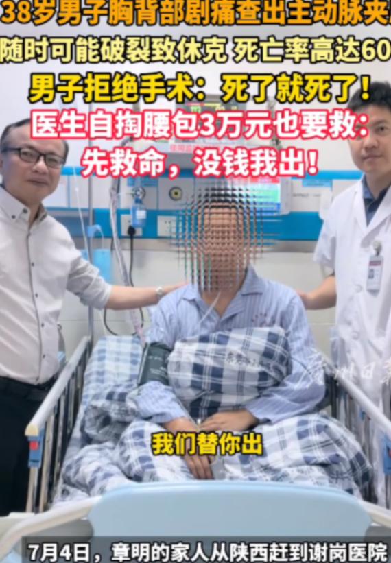 “这医生火了!”广东,38岁男子查出主动脉实层,死亡率高达70%!可男子却拒绝手术,只想回老家,还对医生说:死了就死了吧!本以为医生会遵从男子意愿,没想到,医生竟然自掏腰包3万元:先救命,没钱我出!这些年轻的,家里顶梁柱,一定想尽办法去救! “当时没想那么多,就想着先把命救了再说!”医生激动地说道,广东东莞一则医生自掏腰包救患者的暖心事件在全网刷屏,没有华丽的辞藻,没有刻意的宣传,却让无数网友看得热泪盈眶。 事情发生在东莞谢岗医院,2025年6月30日,38岁的男子章明(化名)因剧烈胸背痛被紧急送医,检查结果让在场医护都捏了一把汗,这种病被称作“人体炸弹”,血管随时可能破裂,48小时内死亡率超50%,一周内死亡率高达70%,多耽误一分钟,就多一分生命危险。 医生当即明确告知,必须立刻手术,这是唯一的生路, 可让人揪心的是,章明在得知病情与费用后,却平静地摇了摇头,态度坚决地拒绝手术,只想立刻回老家,“不治了,死了就死了吧,不能拖累家里人。” 这个在外务工、身为全家顶梁柱的汉子,不是不怕死,而是被现实压得不敢求生,他上有老下有小,全家都靠他一人支撑,担心高昂的治疗费会把整个家庭拖入债务深渊,宁愿放弃自己的生命,也不愿家人跟着受苦。 接诊的卢炯斌医生看在眼里、急在心里,他一边耐心劝说,一边迅速联系东莞市人民医院心血管内科主任郭素峡说明情况,郭素峡主任听完患者的处境与病情,没有丝毫犹豫,当即做出了一个让所有人意外的决定:自掏腰包3万元,先救人! “先救命,没钱我出!这些年轻的,家里顶梁柱,一定想尽办法去救!” 郭素峡主任立刻通过微信把3万元转给卢炯斌,让他赶紧为患者办理手续、启动手术,当章明看到医生真的为自己垫付了费用,反复劝说他活下去的意义时,这个硬气了半辈子的男人终于放下心结,同意接受治疗。 医院迅速开通绿色通道,多学科团队连夜协作,争分夺秒为章明实施手术,凭借医护人员的专业与坚守,这场与死神赛跑的手术最终顺利完成,成功拆除了章明体内的“定时炸弹”,术后章明恢复情况良好,很快转入普通病房,逐渐康复出院。 一条险些凋零的生命,因为两位医生的仁心与担当,被硬生生从鬼门关拉了回来, 这件事被报道后,迅速在网络上引发热议,网友们纷纷为医者大爱点赞,有网友留言:“见过太多因为钱放弃治疗的无奈,第一次见医生主动垫钱救命,这才是真正的白衣天使,太暖了!” 还有网友感慨:“3万块钱不多,但这份心意千金难买,医生不仅救了一个人,更是守住了一个完整的家。” 在生死面前,有人选择退缩,有人选择担当,郭素峡与卢炯斌两位医生,用最朴素的行动诠释了“医者仁心”四个字,他们没有豪言壮语,只凭一份本能的善良与职责,在患者最绝望的时候,递上了最坚实的依靠。 这束来自医者的微光,不仅照亮了一个家庭的前路,更温暖了整个网络,让我们相信,人间值得,善意常在。 信息来源:光明网《“先救命,没钱我出!”38 岁男子病情凶险却说 “死了就死了”,医生自掏 3 万元也要救》