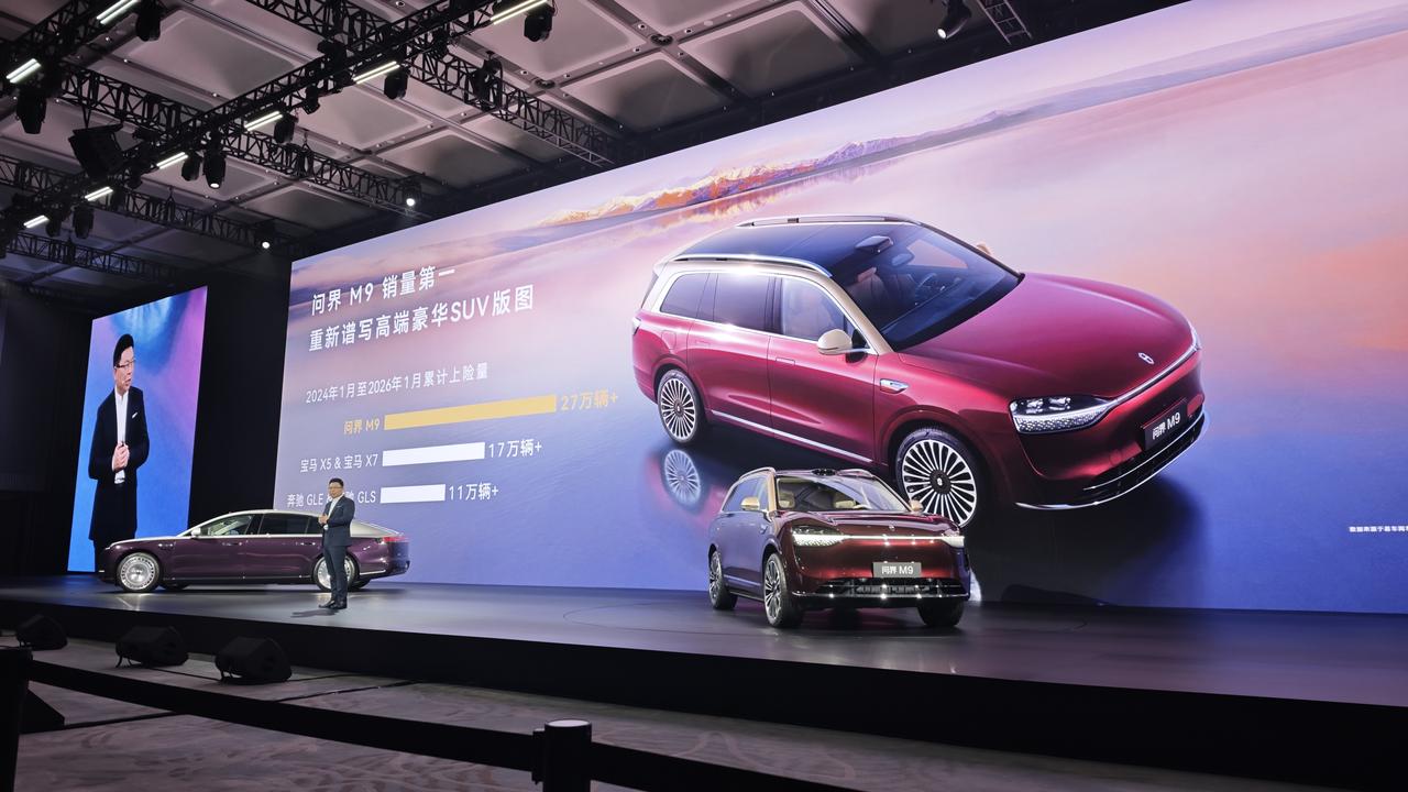惯例了,鸿蒙智行技术焕新发布会第一项先放销量。鸿蒙智行历史累计交付128万辆,其中问界M9有28万辆,看着似乎只占了个零头,但别小看这个数据,已经超过老牌的GLS GLE X7 X5了。 尊界S800交了1.5万辆,路面的可见度也高了不少,过年回家你见过吗?