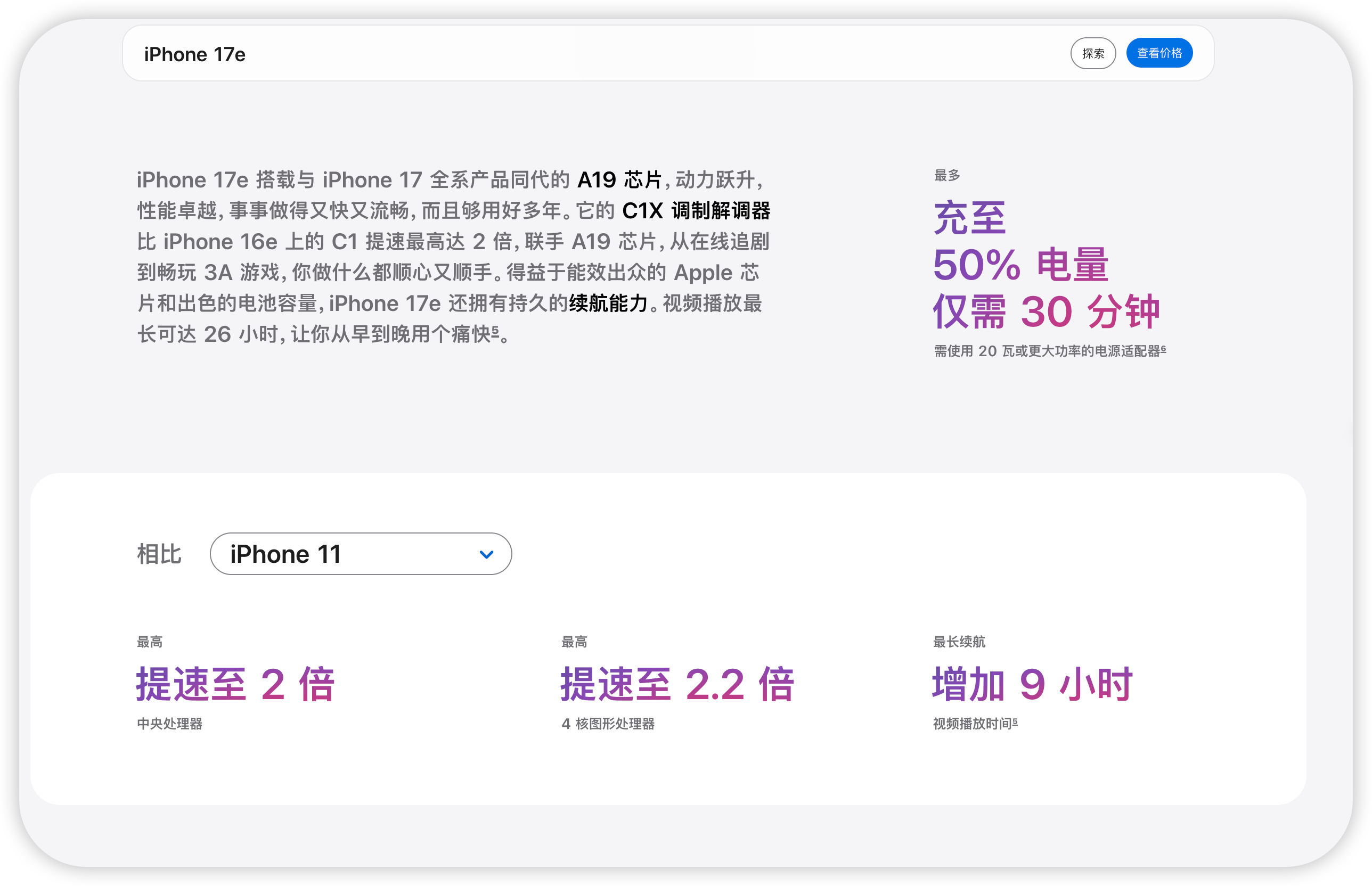 还得是苹果,iPhone 17e 详情页对比机型里只放了iPhone11、iPhone 12、iPhone SE2、iPhone SE3。