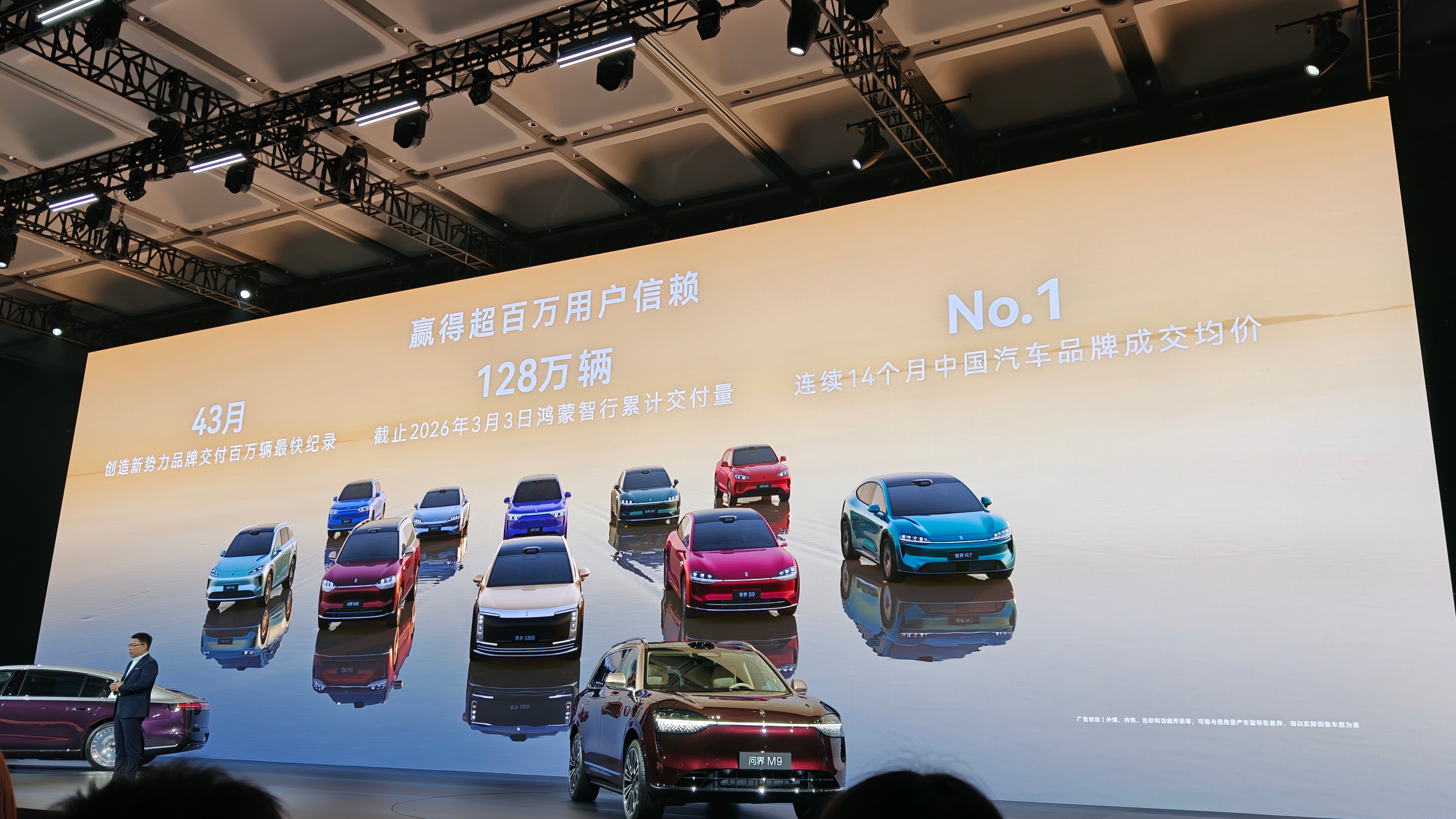 创造新能源品牌交付百万辆最快纪录 43月载止2026年3月3日鸿蒙智行累计交付量128万辆连续14个月中国汽车品牌成交均价第一名