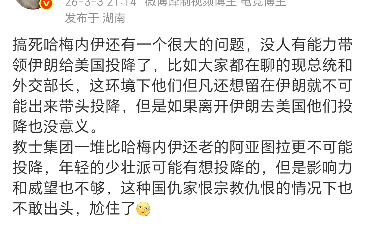 昨天有人分析到日本投降的时候美国为什么要保全天皇的性命和体面也是这个原因……必须得有一个地位很高台面上的人去控制脱缰的野马,伊朗的这个人被美国亲手干掉了