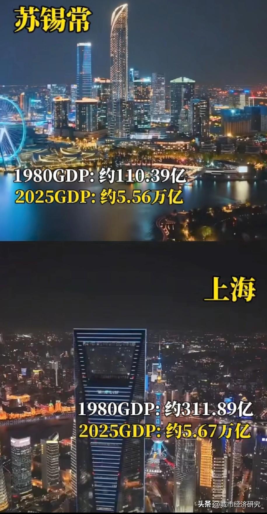 苏锡常(苏州常州无锡)与上海GDP数据对比情况,1980年上海GDP曾经大约为苏锡常GDP之和的3倍左右,到了2025年苏锡常GDP总量之和达到了5.56亿元人民币左右,而上海2025年GDP大约为5.67亿元人民币,可见苏锡常GDP总量已经非常接近上海GDP总量,随着未来的继续发展,苏锡常GDP还是很有希望超越上海GDP的,苏锡常未来的发展潜力非常不错。