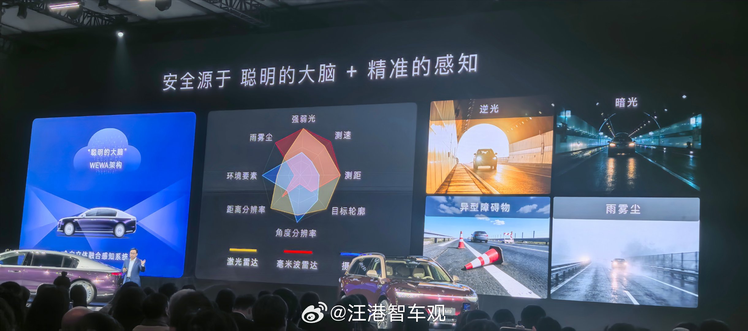 鸿蒙智行技术焕新发布会 这张图可以非常清晰的看出激光雷达、毫米波雷达、摄像头三者之间的性能和场景差异!