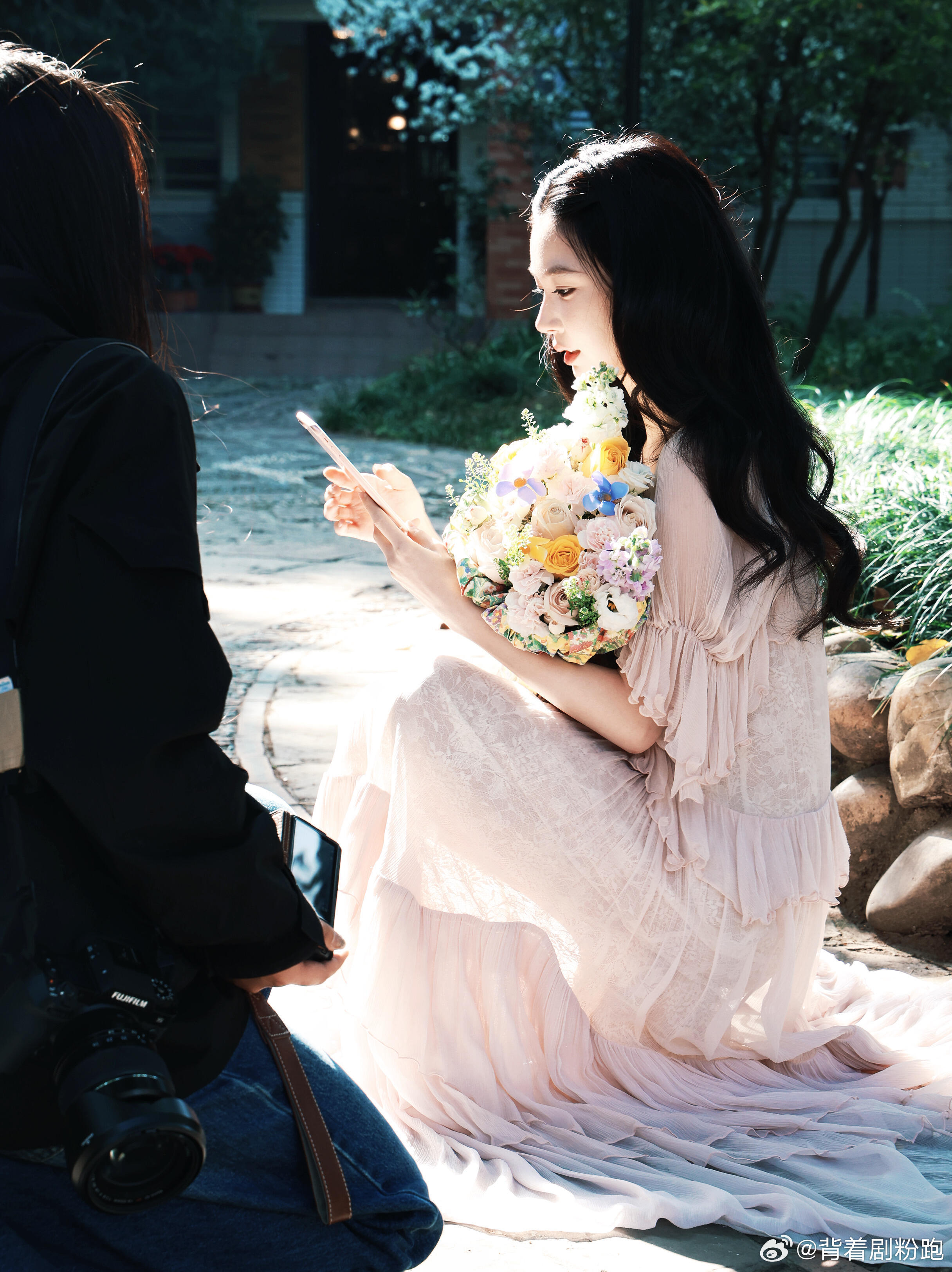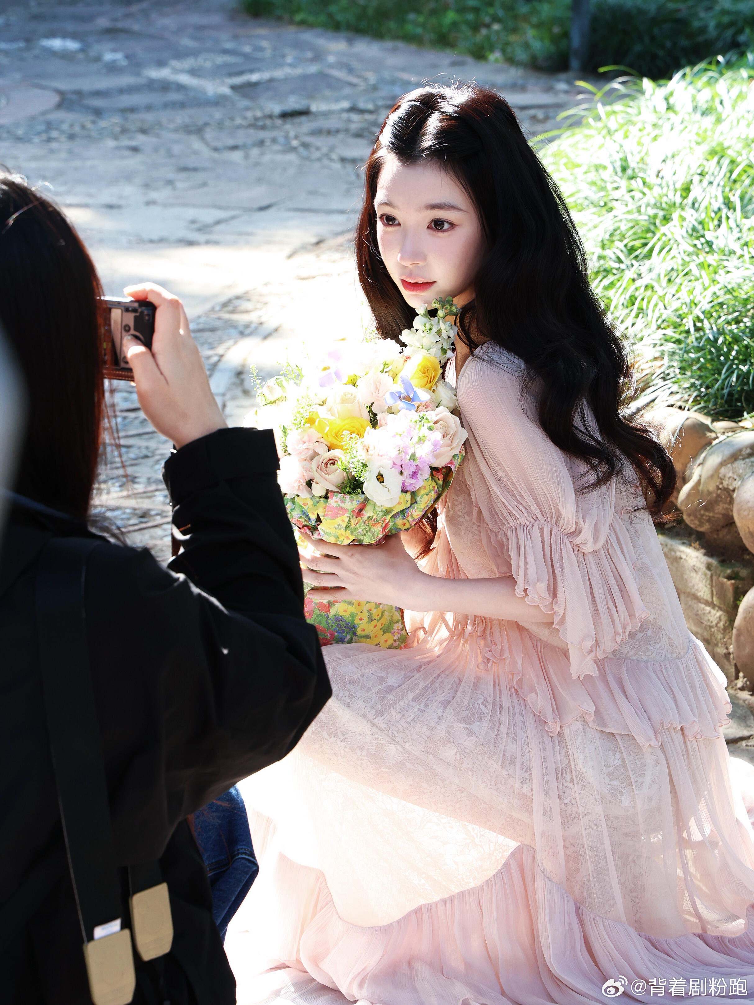 易梦玲进组《告白》第一天路透,饰演白月光叶赛宁,公主风妆造好仙气飘飘,手捧鲜花?