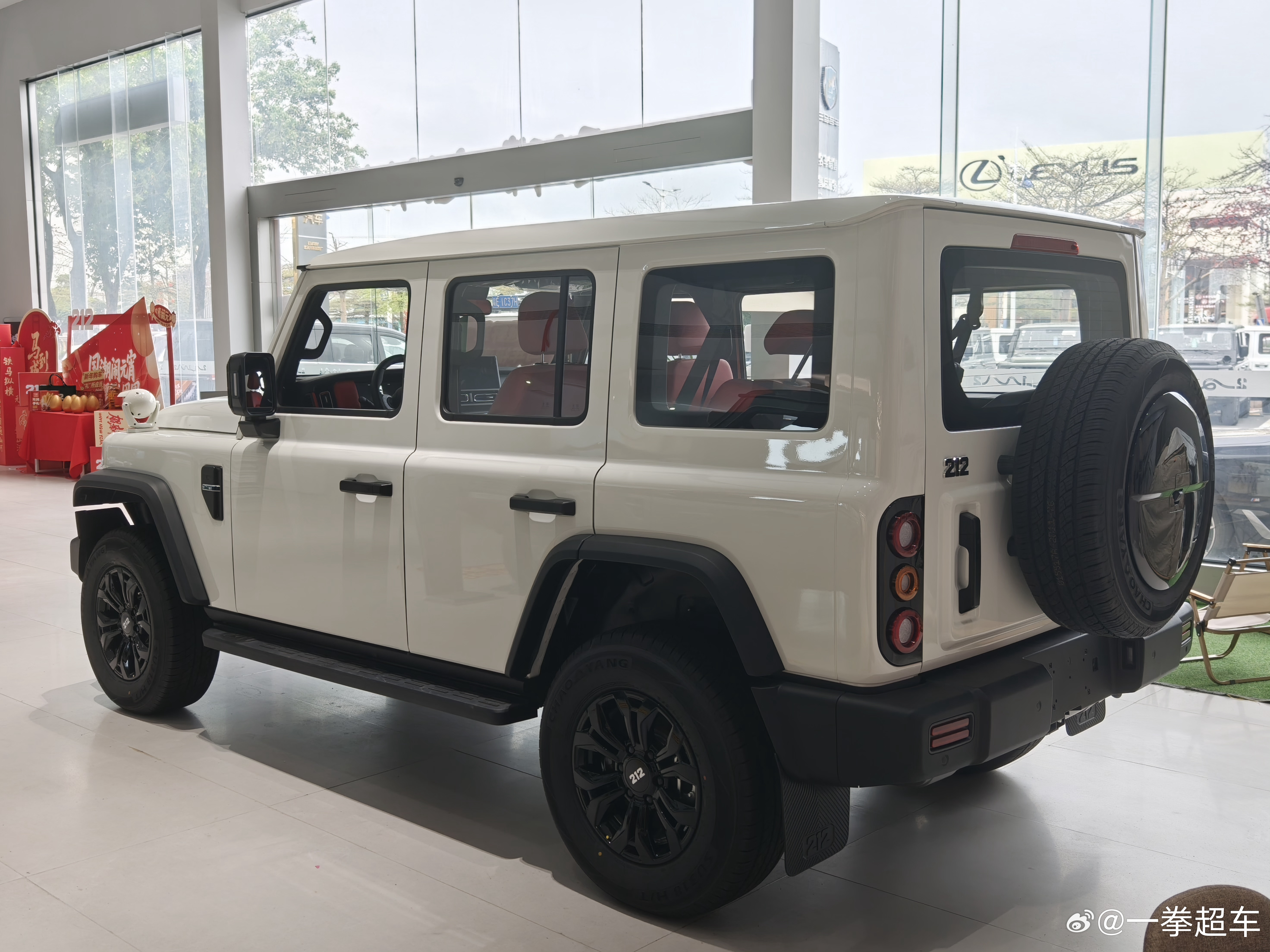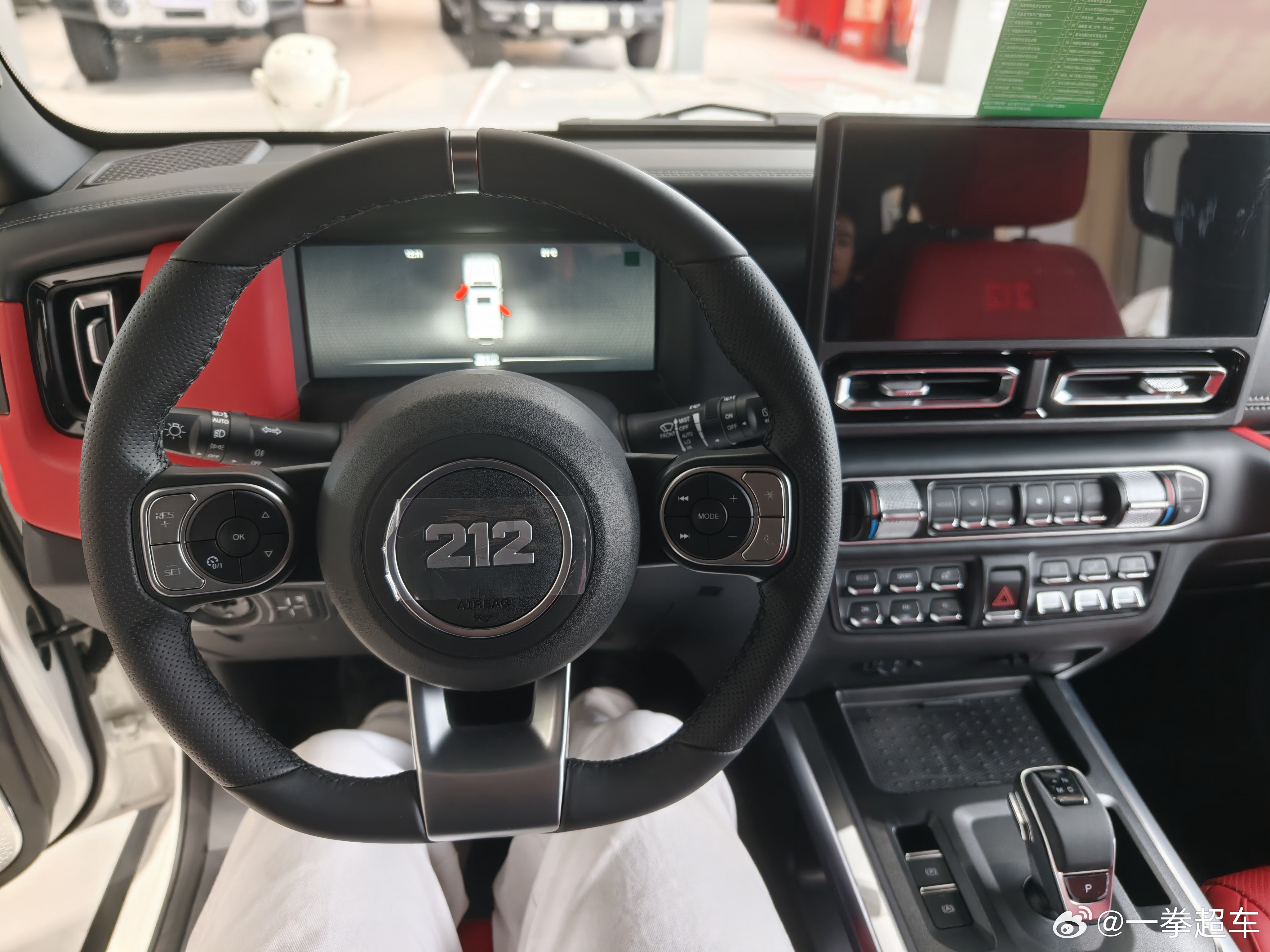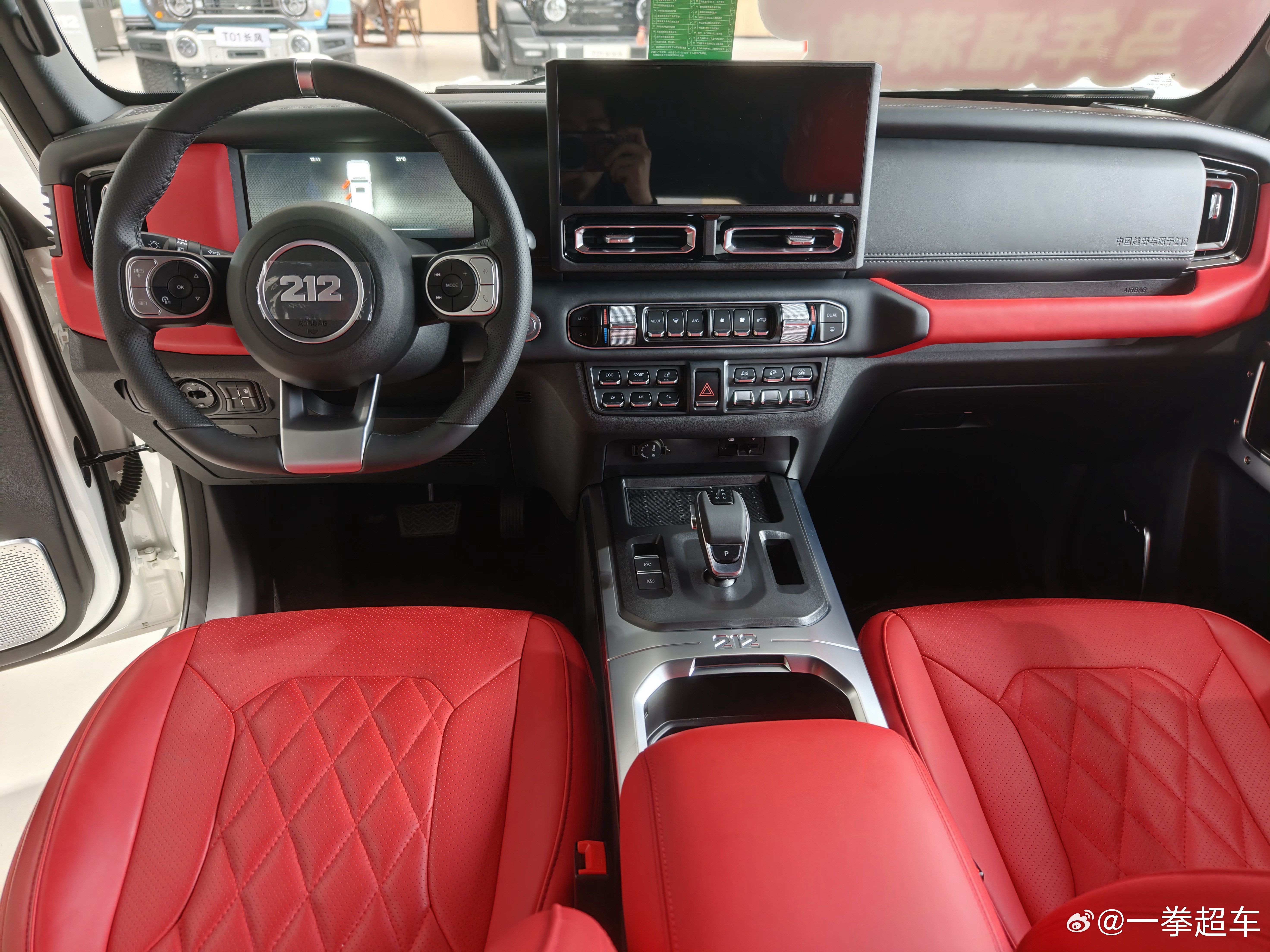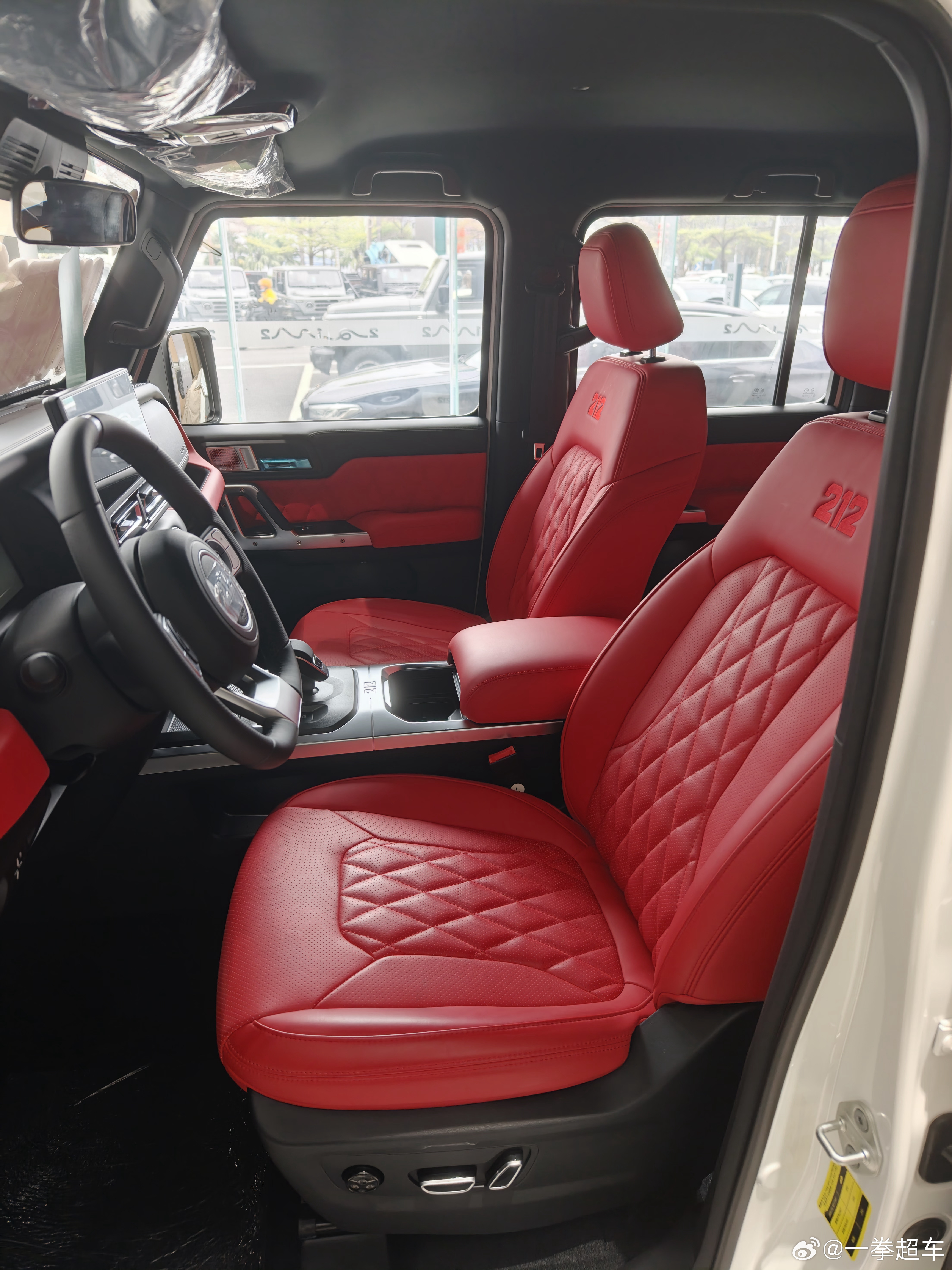 有一说一,212的外形还挺好看的,上次车展看过就觉得很不错。内饰设计到处都透露着粗犷,不过中控屏下面的按键确实可以给好评,我坐那辆展车的红内也非常辣眼,黑内看着还行。座椅整体的感觉也很粗糙,前后排能都坐,也不会太难受也不舒服,就很符合这车粗犷的定位吧。
