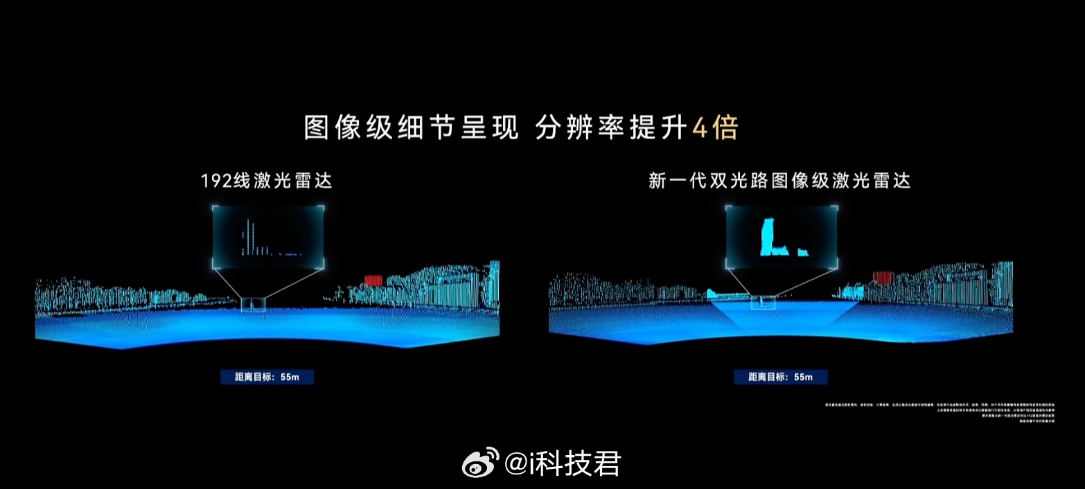 华为乾崑智驾发布全球量产最高896线激光雷达首创双光路架构,广角+长焦接收单元,一体成像相同距离比192线激光雷达看到的画面更丰富