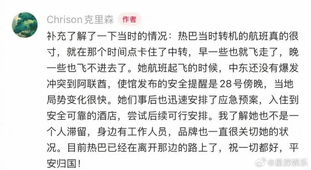 曝迪丽热巴或已落地马来西亚看到消息说热巴已经到马来西亚了,悬着的心终于能松一点了。从迪拜滞留到现在,每一步都让人揪心。比起什么行程曝光和品牌损失,现在只希望她能平平安安,早点回家。团队真的该好好反思了,艺人的安全永远是第一位的啊。