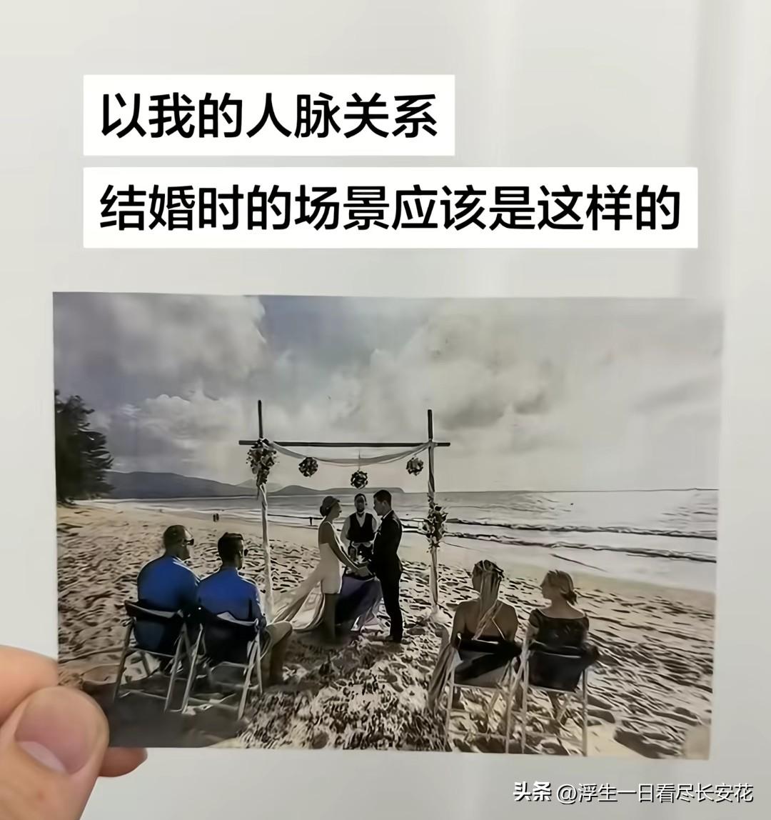 【“结婚凑不齐一桌”又怎样?真正的婚礼,从来不是给别人看的】 “以我的人脉,结婚饭店都凑不齐一桌。”最近网上这段自嘲火了。有人晒出“沙滩婚礼只有5个观众”的照片,配文“这就是我的人脉现状”;还有人调侃“结不了婚不是因为没人爱,是因为没人来”。但笑着笑着,很多人突然鼻酸:我们什么时候开始,用“宾客数量”衡量婚姻的价值了? 其实,“凑不齐一桌”的婚礼,可能比流水席更珍贵。去年有对情侣在出租屋结婚,邀请的只有双方父母和3个朋友,没有司仪,没有婚纱,甚至连像样的菜都没有。但新郎说:“看着我妈偷偷抹眼泪,朋友抢着刷碗,我突然觉得,这才是婚礼该有的样子。”反观那些摆了50桌的婚礼,新人忙着敬酒应酬,连好好说句“我爱你”的时间都没有。网友说得对:“人家更关心啥时候开席,谁真的在乎你结不结婚?” 婚姻的本质,从来不是“人脉大赏”。心理学上的“社会比较理论”告诉我们,很多痛苦都来自“别人有的我也要有”。看到同事婚礼请了明星,同学婚车排了10辆,就觉得自己的小婚礼“拿不出手”。但你忘了:婚姻是两个人的事,不是给亲戚朋友演的戏。就像那位网友说的:“除了亲近的人,谁会真的关心你结没结婚?”你过得幸福,比任何排场都重要。 现在流行“极简婚礼”:有的新人去民政局领完证,在路边摊吃碗面就算礼成;有的选择旅行结婚,只有彼此和沿途的风景。这些“凑不齐一桌”的婚礼,反而少了攀比,多了真心。毕竟,婚姻的有效期是一辈子,而婚礼不过是一天。与其花光积蓄办一场“给别人看”的盛宴,不如把钱省下来,给未来的小日子添砖加瓦。 你理想中的婚礼是什么样?评论区聊聊,你觉得婚礼一定要“人多热闹”吗?