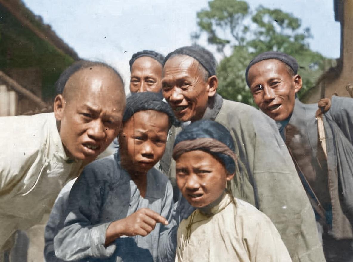 晚清,一群不同年龄的晚清底层百姓面对“新鲜洋玩意”的真实反应,所有人都紧紧凑向镜头,眼神直勾勾盯着相机,脸上混杂着极致的好奇、惊讶,还有几分茫然与局促。有人伸手指向镜头,有人探着身子张望,没有任何摆拍的刻意感——这是他们第一次见到能“留存人像”的摄影设备,本能的探究欲被完整定格。 晚清时期,摄影术最初只服务于宫廷、贵族和富商,底层百姓极少有机会接触。这张照片的拍摄者(多为西方传教士、探险家或商人)深入民间,记录下了非精英阶层对“外来技术”的真实反应,还原了他们的精神状态——对外部世界的懵懂好奇,以及面对未知事物的本能反应。