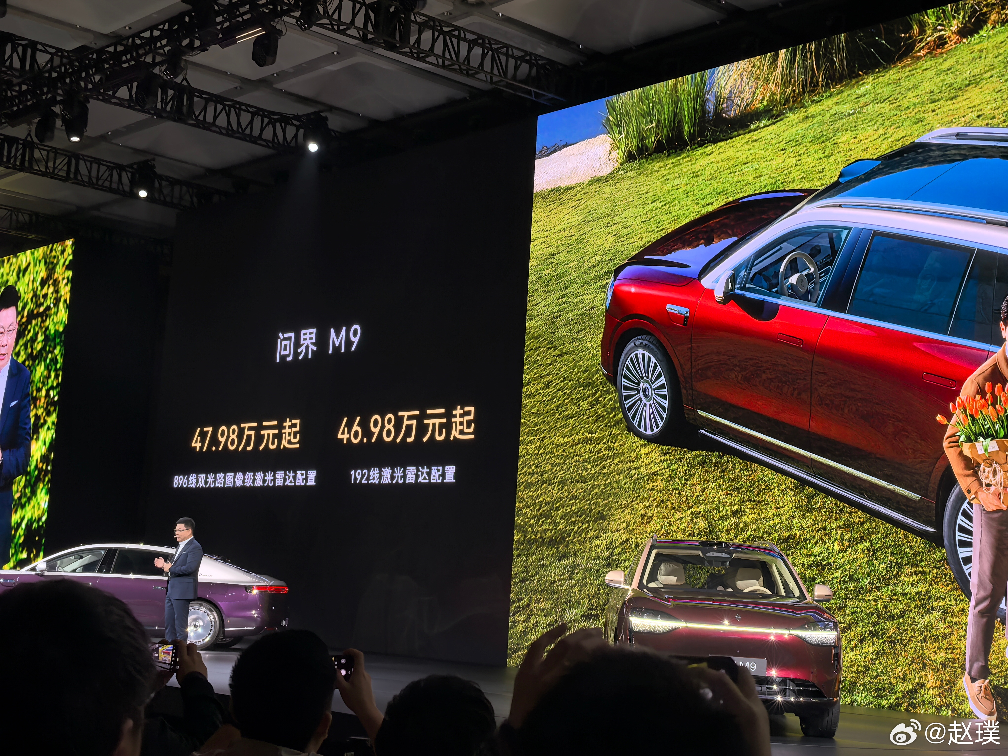 全新问界M9分为两个版本,192线激光雷达版本46.98万起,896线激光雷达版本47.98万起