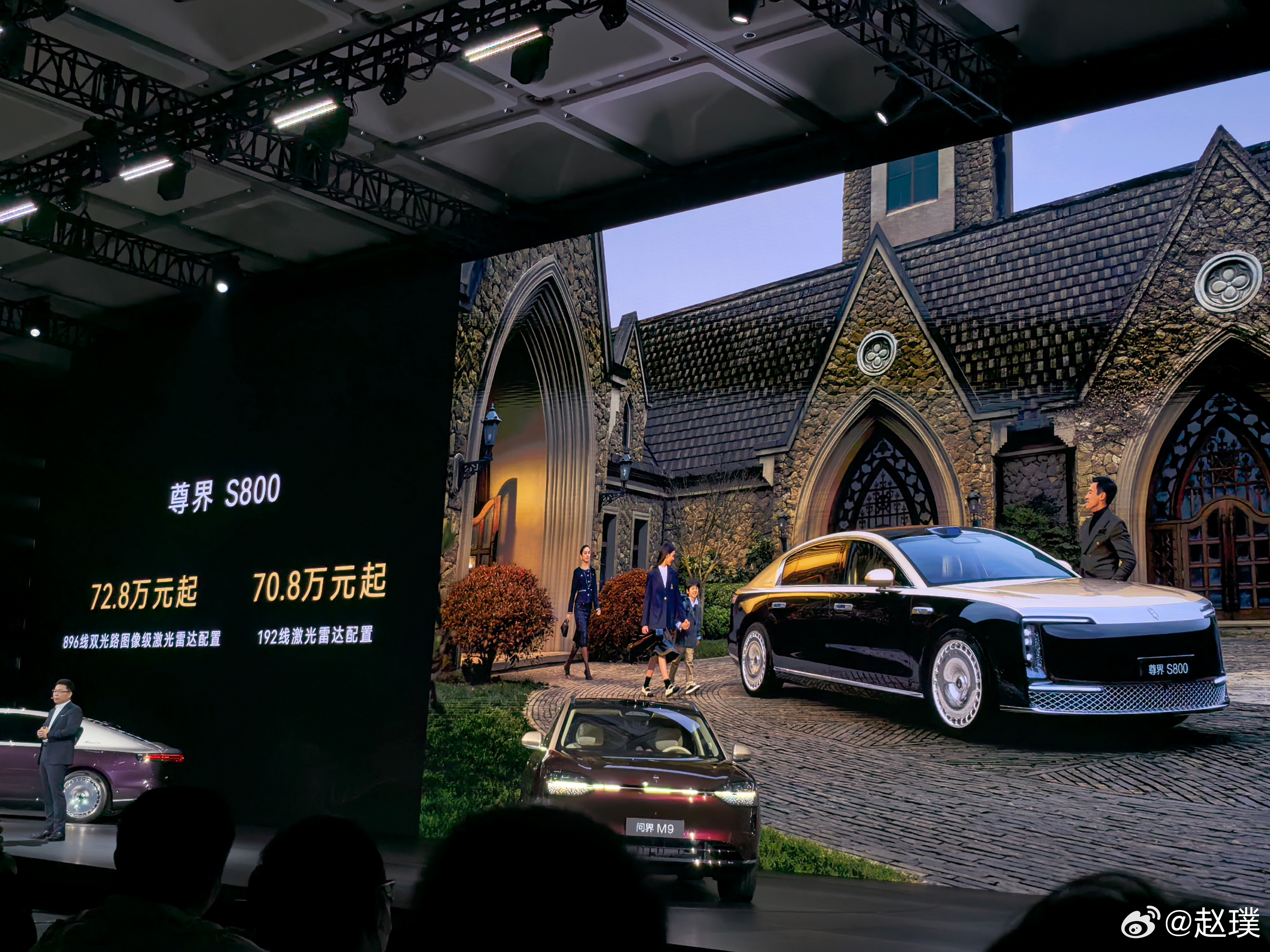 价格出炉:尊界S800推出两个版本,192线激光雷达售价70.8万起,896线激光雷达版本72.8万起。