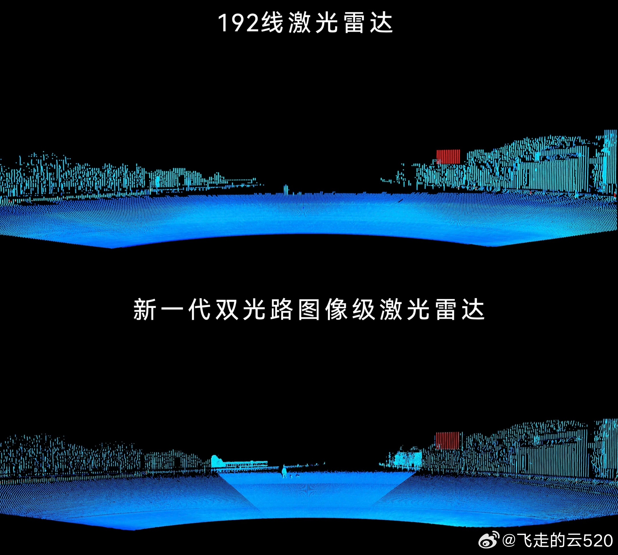 华为今天的激光雷达牛逼啊,两种焦距的激光接受镜头,实现了类似人眼的中心清晰度高,两侧清晰度低的激光雷达点云分布