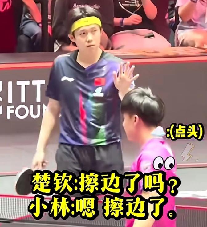 笑死我了!王楚钦和林昀儒关系太好了吧! 大头自己打出的球, 没看清擦没擦边, 居然问对手林昀儒? 小林也很诚实:说擦边了。 这就是新加坡大满贯决赛的一幕, 其实两个人打, 我看的很放松, 虽然林昀儒最近进步很大, 但是要想赢王楚钦, 太难了。 方博说: 王楚钦的发球是天赋, 球速快, 旋转强, 落点多, 加上前三板抢攻, 一般没人能顶的住。 所以我们看到林昀儒打小莫时, 小林的杀手锏, 跳过来拧拉, 到了王楚钦这里就不灵了, 输给王楚钦, 也就是时间问题了。 不过两个人的关系, 能让人感到温暖!