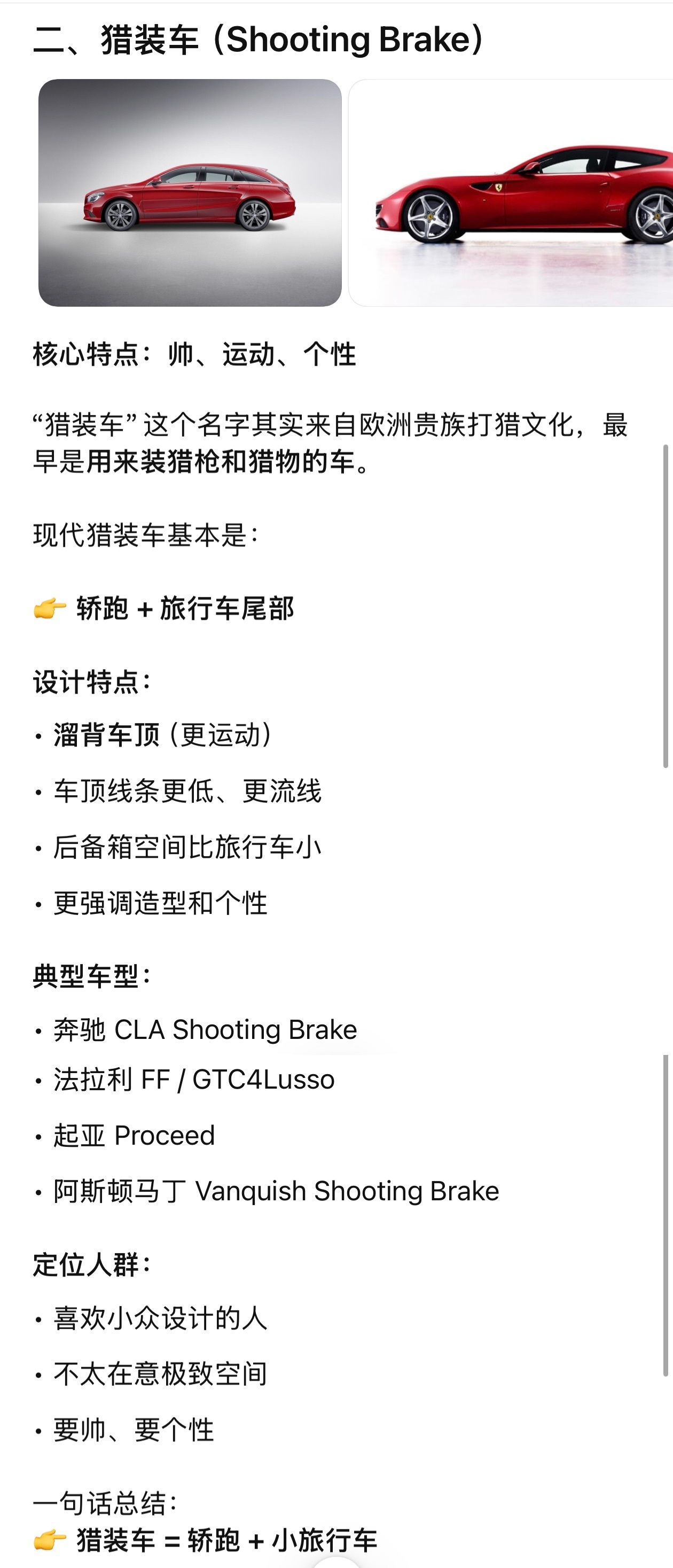 简单说:旅行车是实用取向,猎装车是运动+个性取向。