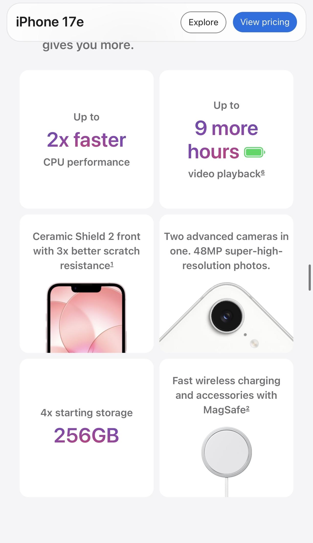消息一出来,震惊了我的三观 库克玩儿了一手好阳谋,iPhone17e在国内的作用其实是为了凸显iPhone17性价比拉满! 网上都在说,iPhone17e国补3999元太香了。但我想问一下,除了A19芯片「阉割版」,它还有啥底气能上4k的价格?是超广角级单摄、15W慢充,还是60Hz大黑边库存屏幕,又或是单频GPS和较差的信号? 说句不好听的,为啥数码博主大多都说不太值,因为我们用过很多安卓同价位4.5k±旗舰机,体验比iPhone17e好不少。并且iPhone17e的国补价格不是所有人能买,大多数人实际还是4499的价格,这样看就不值得了 但是放在国内,iPhone17标准版5099能到手,换新补贴券也差不多是这个价格,那就很香了呀。加个500预算,能得到1-120Hz的高刷屏,多一颗4800万像素的主摄,双频GPS...日常使用,如果不打大型游戏和摄影,它的体验和Pro系列没多大区别 所以国内iPhone17e就是凸显iPhone17的性价比。这点从iPhone16e也能看出来,国行销量惨淡,但是国外却还可以[捂脸]但是,国外销量好些,也是iPhone数字e系列是充话费送的合约机...