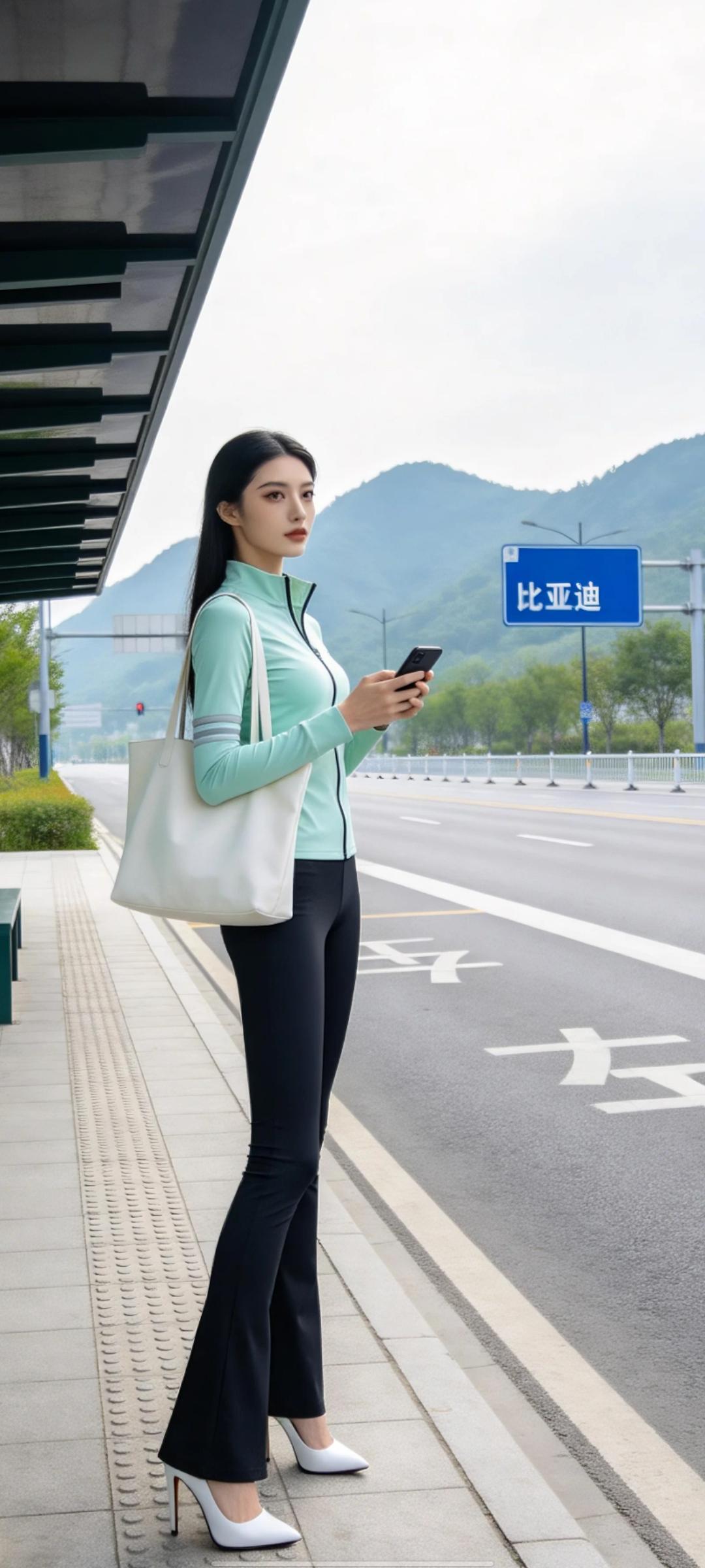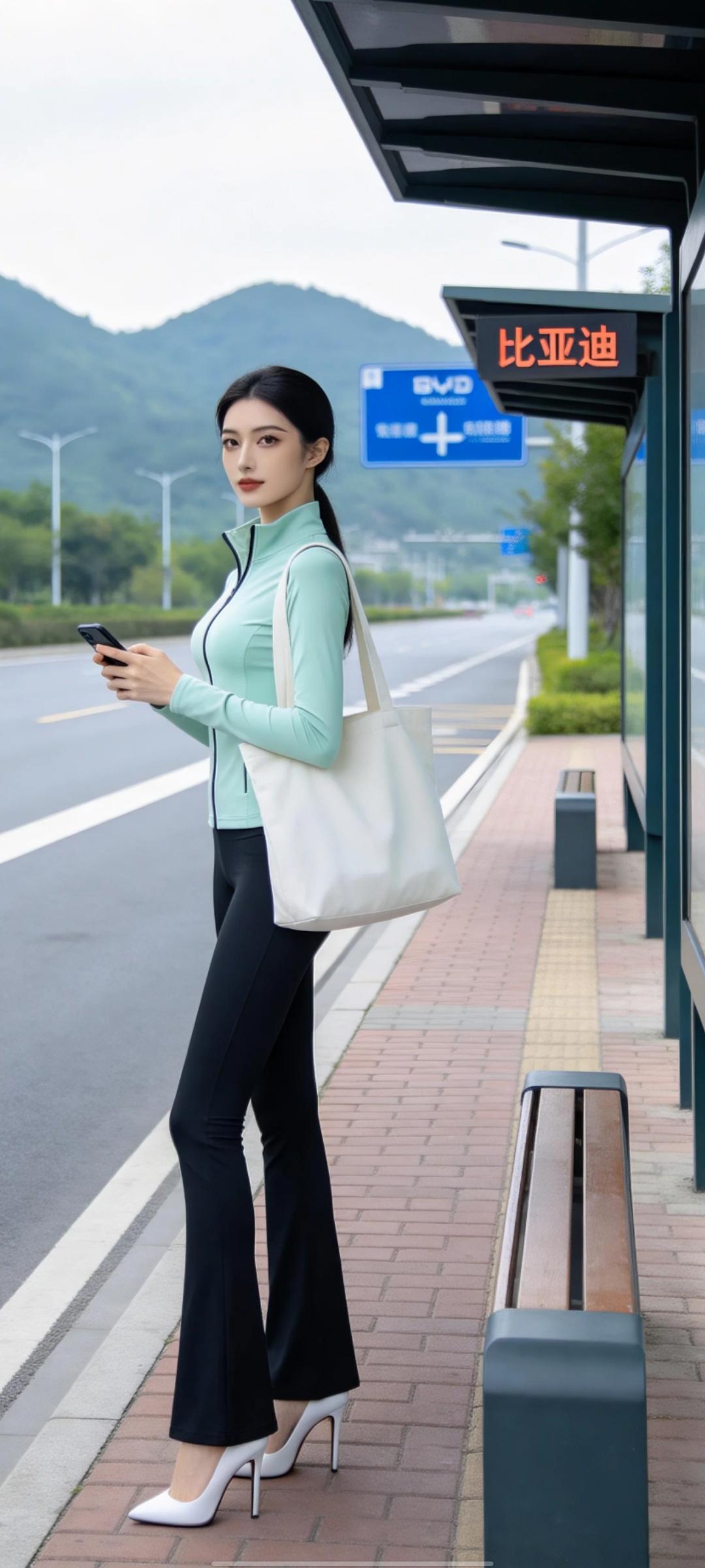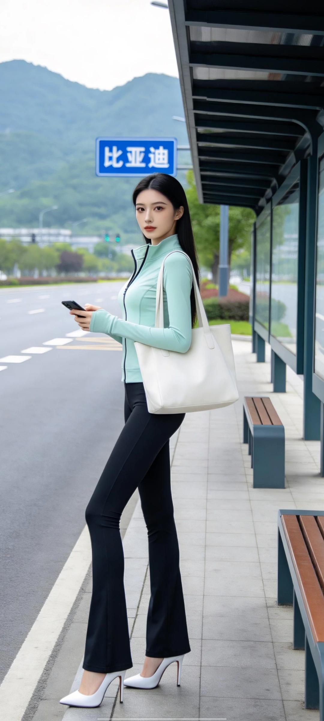 美女的美丽瞬间分享车站等公交的瞬间。